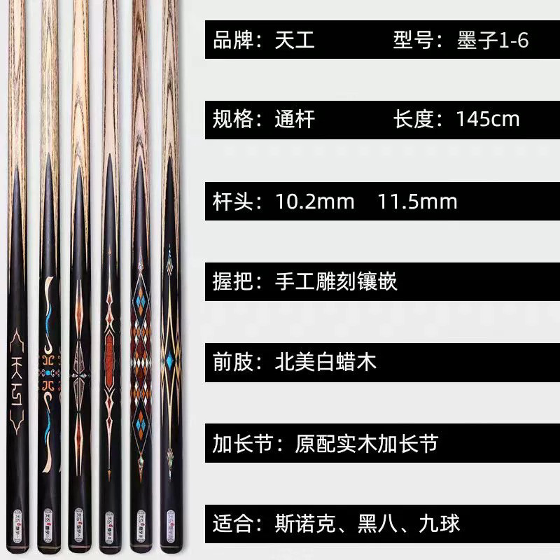 天工台球杆天工墨子6小头杆小头桌球杆手工免漆墨子六墨子球杆