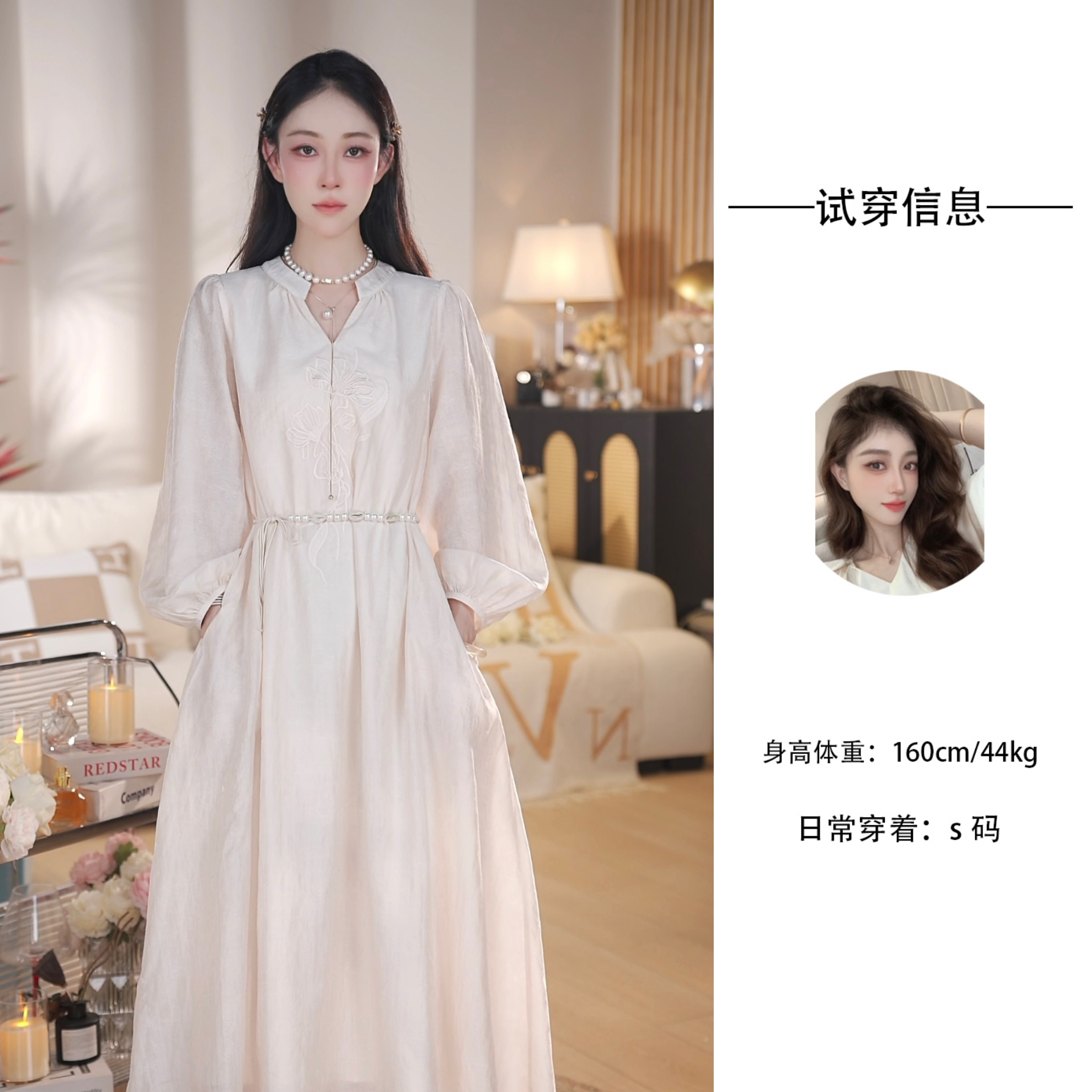 liebeskuss送腰带设计感长袖连衣裙2025新款天丝刺绣宽松显瘦长裙