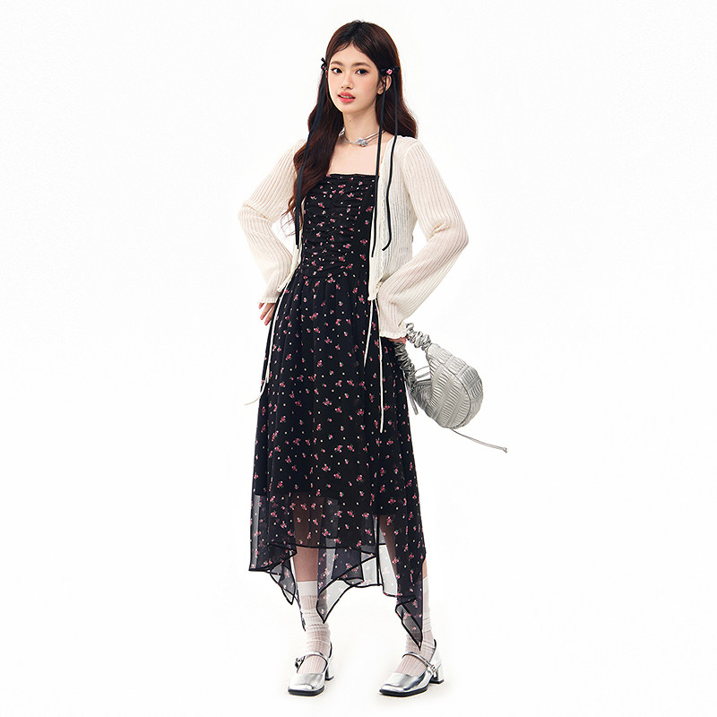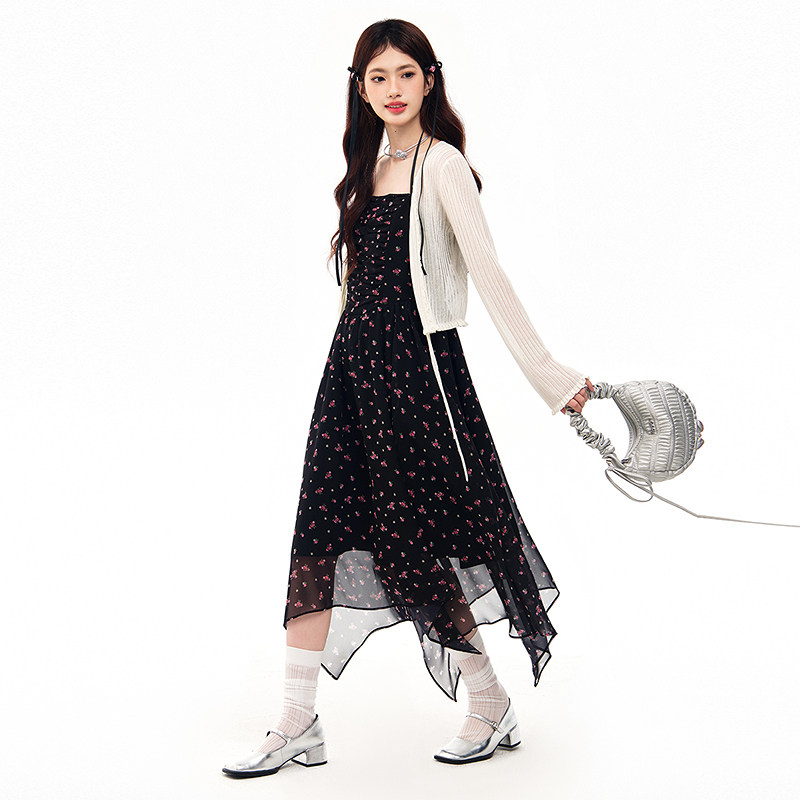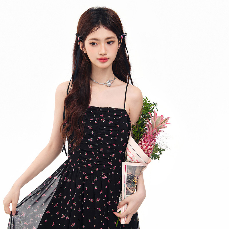 乐町夏季新款绝美气质印花吊带连衣裙C1FAE2236