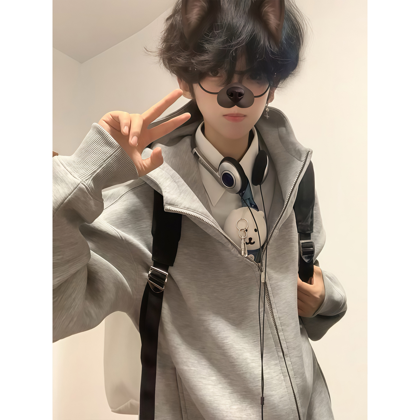 美式高领灰色连帽卫衣男重磅秋冬季加绒加厚休闲情侣百搭开衫外套