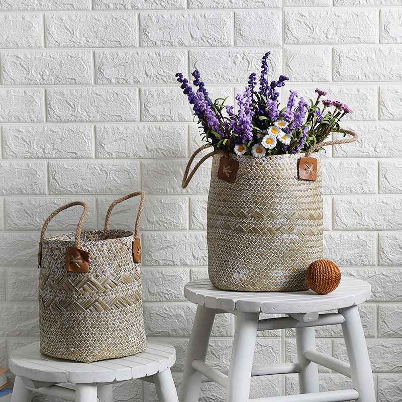 花篮草编创意花盆套提篮 手提编织收纳篮 网红款插花篮乡村花器