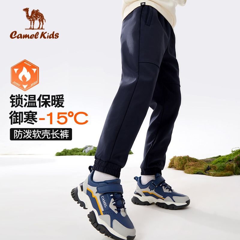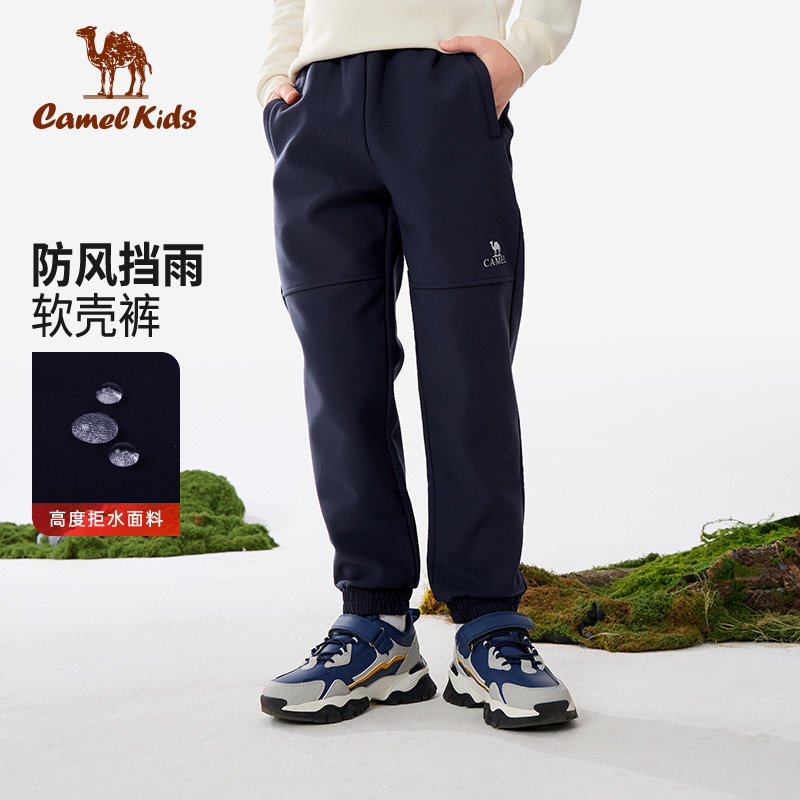小骆驼儿童冲锋软壳裤秋冬户外防水2025新款中大童加厚保暖长裤子