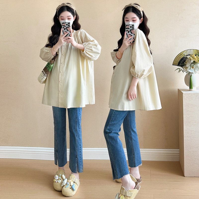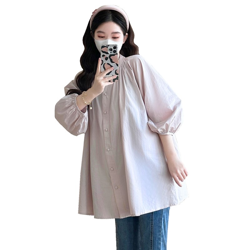 孕妇装春装宽松显瘦a字中长款遮肚泡泡I袖衬衫春夏季小个子连衣裙