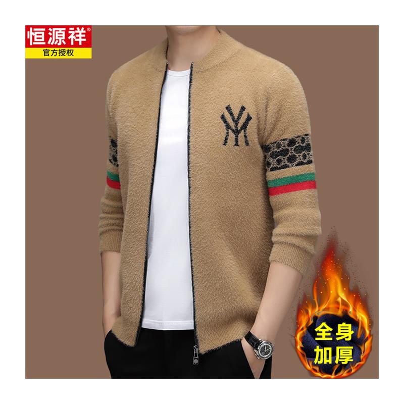 恒源祥高端正品100%纯羊毛衫春秋男士针织衫开衫潮流爆款毛衣外套
