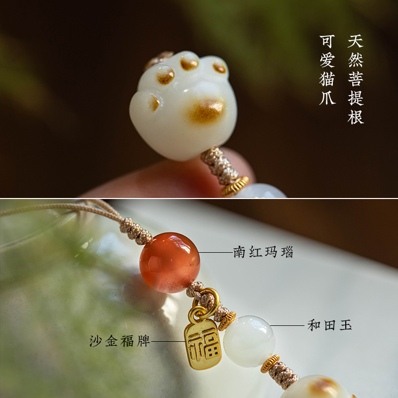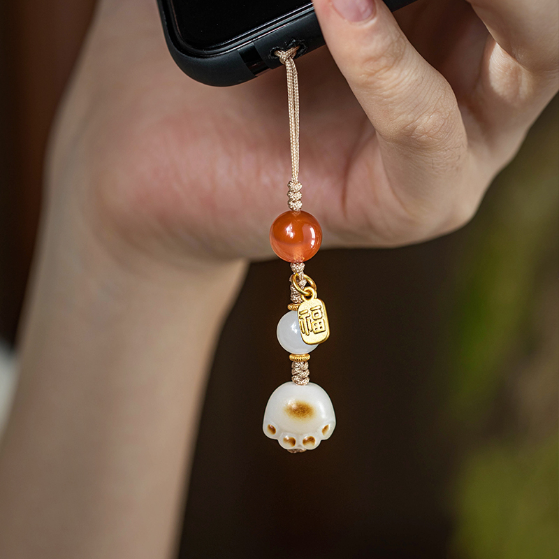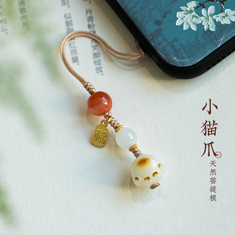 琼睿小猫爪炭烧白玉菩提手机挂绳女南红玛瑙钥匙扣玉石包包挂饰手机链挂饰品情侣挂件女精致U盘吊坠挂坠