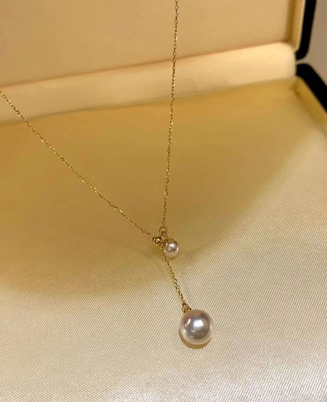 天然海水珍珠akoya吊坠 双珠吊坠 18K金 正圆 极强光 无瑕 简单时