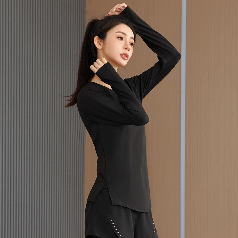 大码瑜伽服T恤女春秋2025新款健身跑步宽松运动速干长袖上衣套装