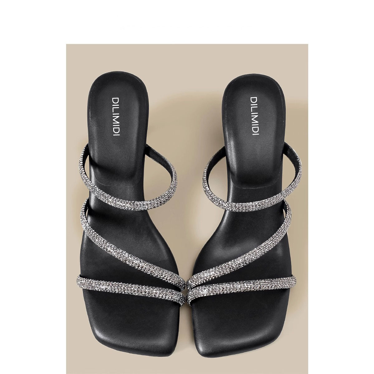 水钻带凉拖鞋女2024夏外穿高跟凉鞋女黑色高跟鞋女设计感小众粗跟
