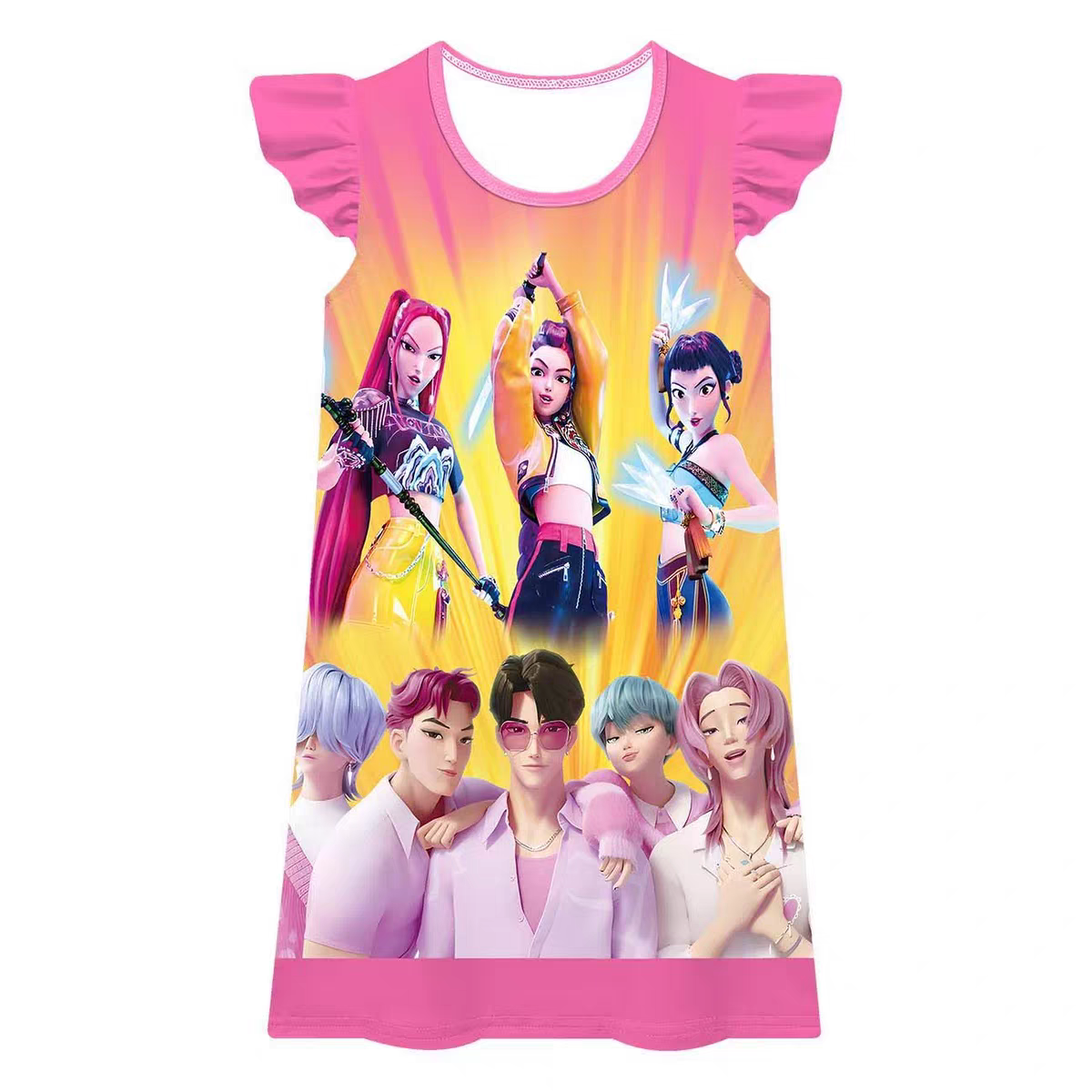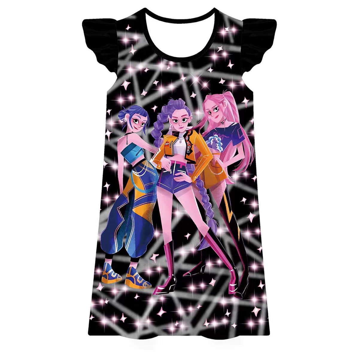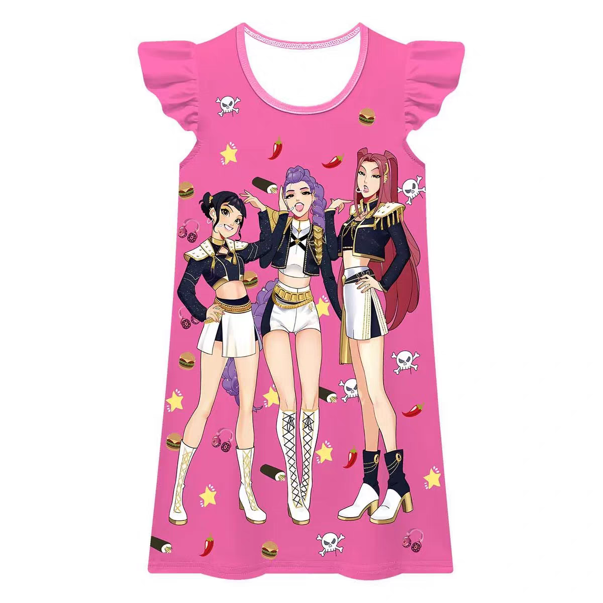 夏季薄款睡衣女童睡裙K-POP猎魔女团鲁米冰丝风家居服女童连衣裙
