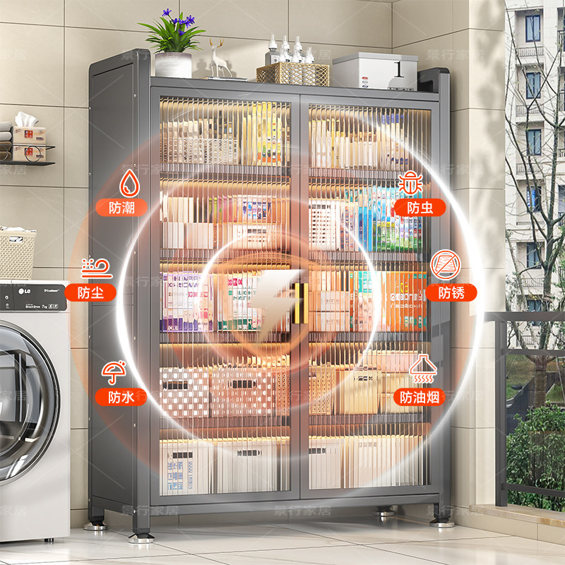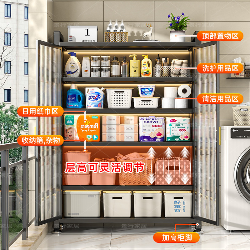 家用钢制置物收纳柜卧室阳台客厅多层一体靠墙柜子简易多功能衣柜
