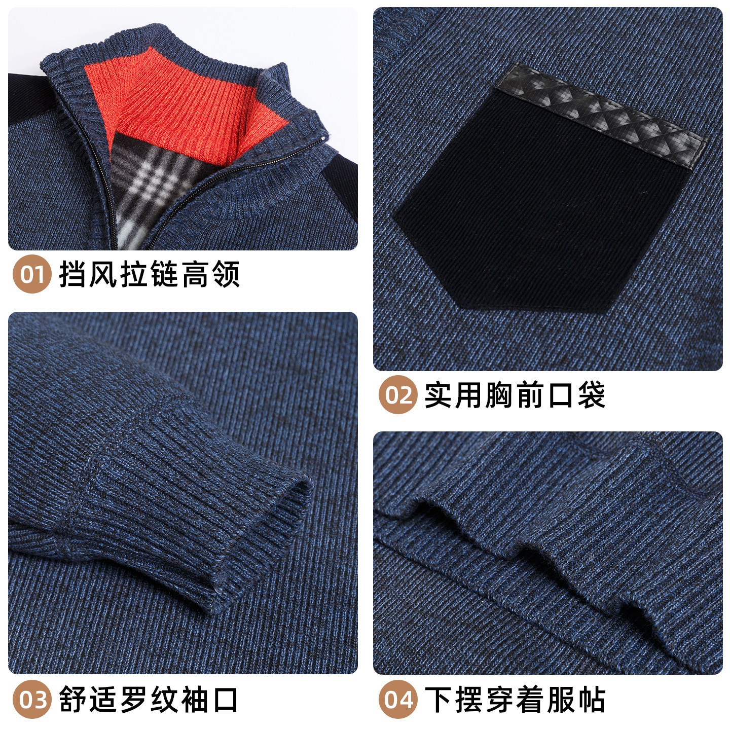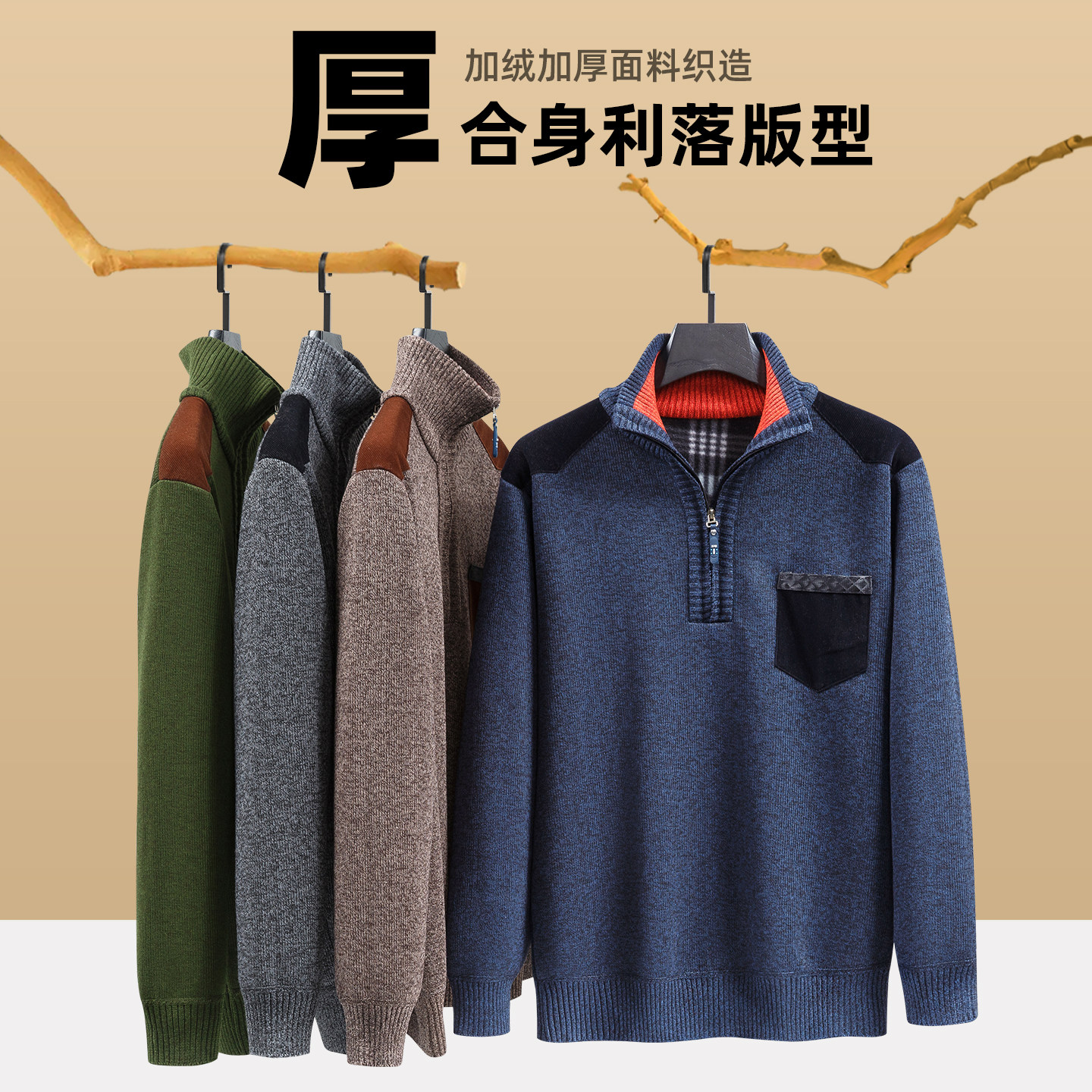 新款爸爸冬装毛衣加绒加厚中年男士重磅保暖针织衫中老年打底线衣