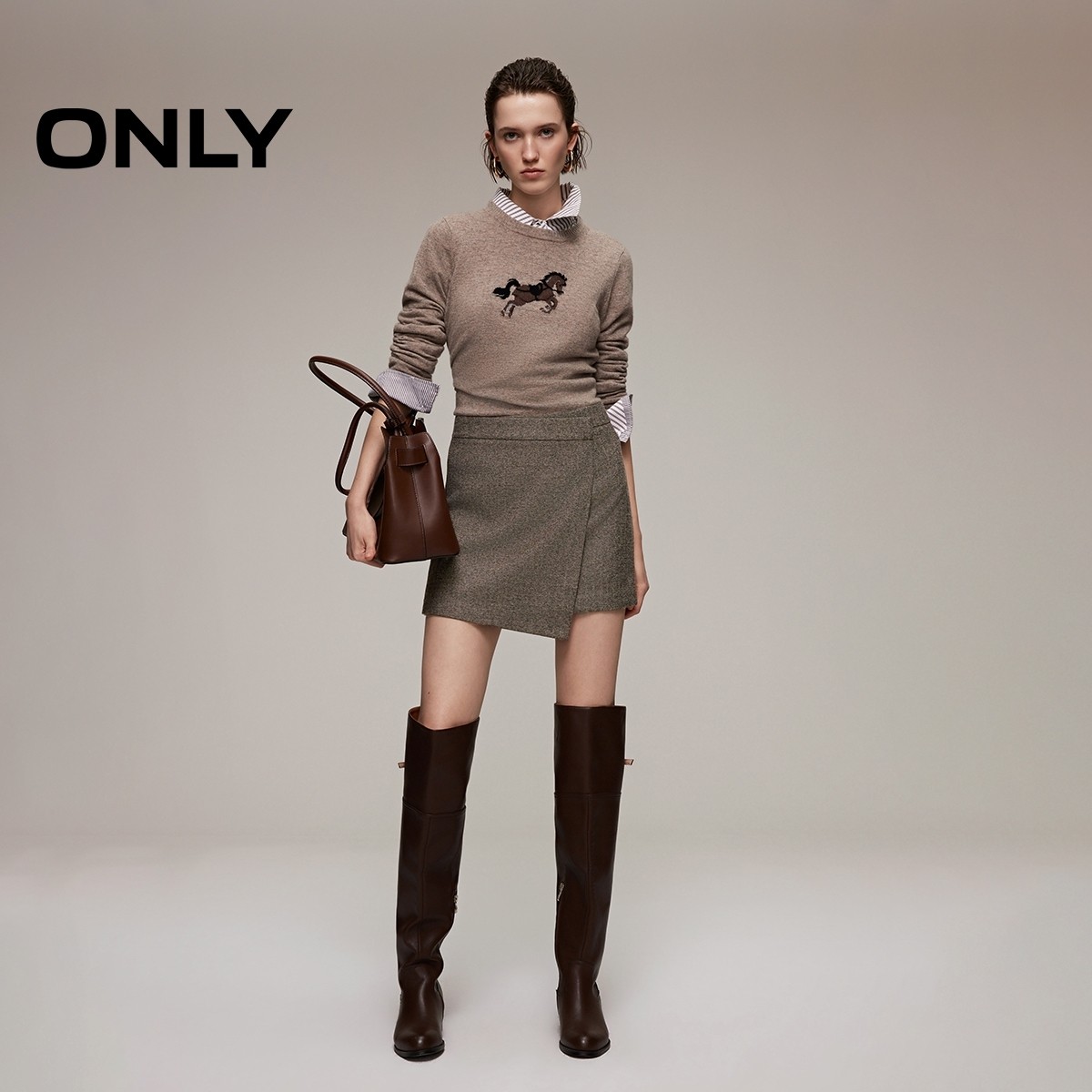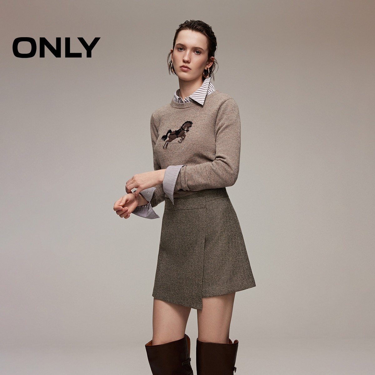 ONLY2026春季新款优雅设计感斜襟腰头假口袋高腰A字短裙半身裙女
