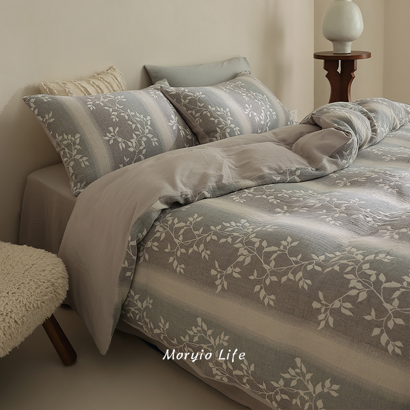 木悠高级感复古三层纱全棉四件套纯棉纱布软糯双层纱被套床单床品