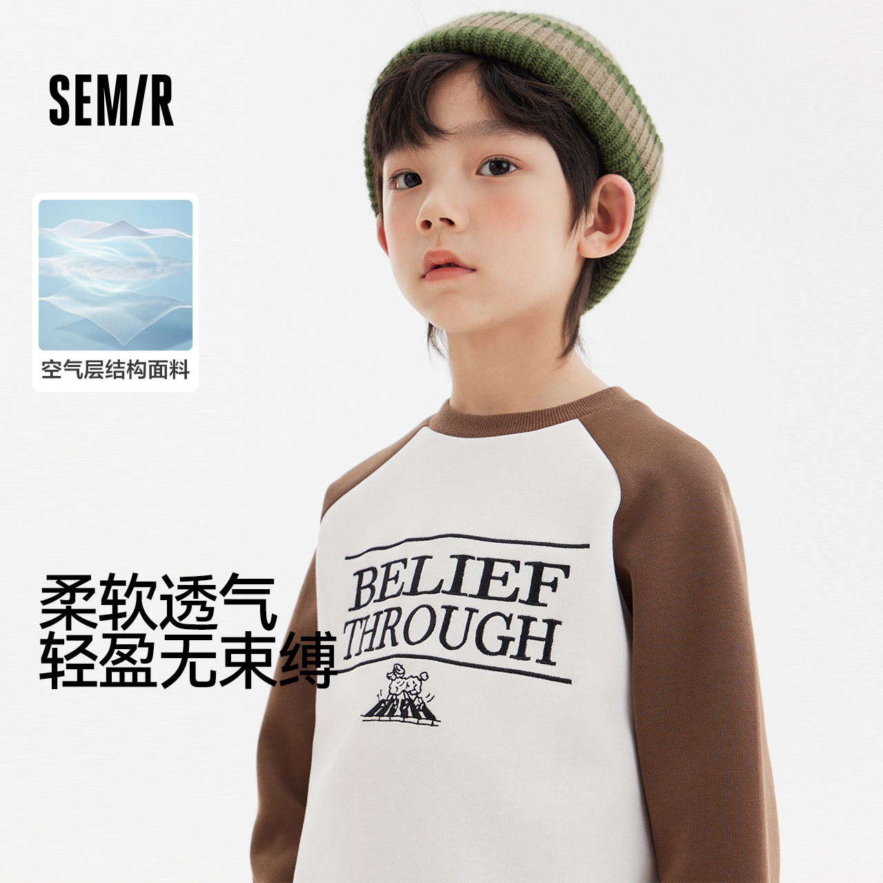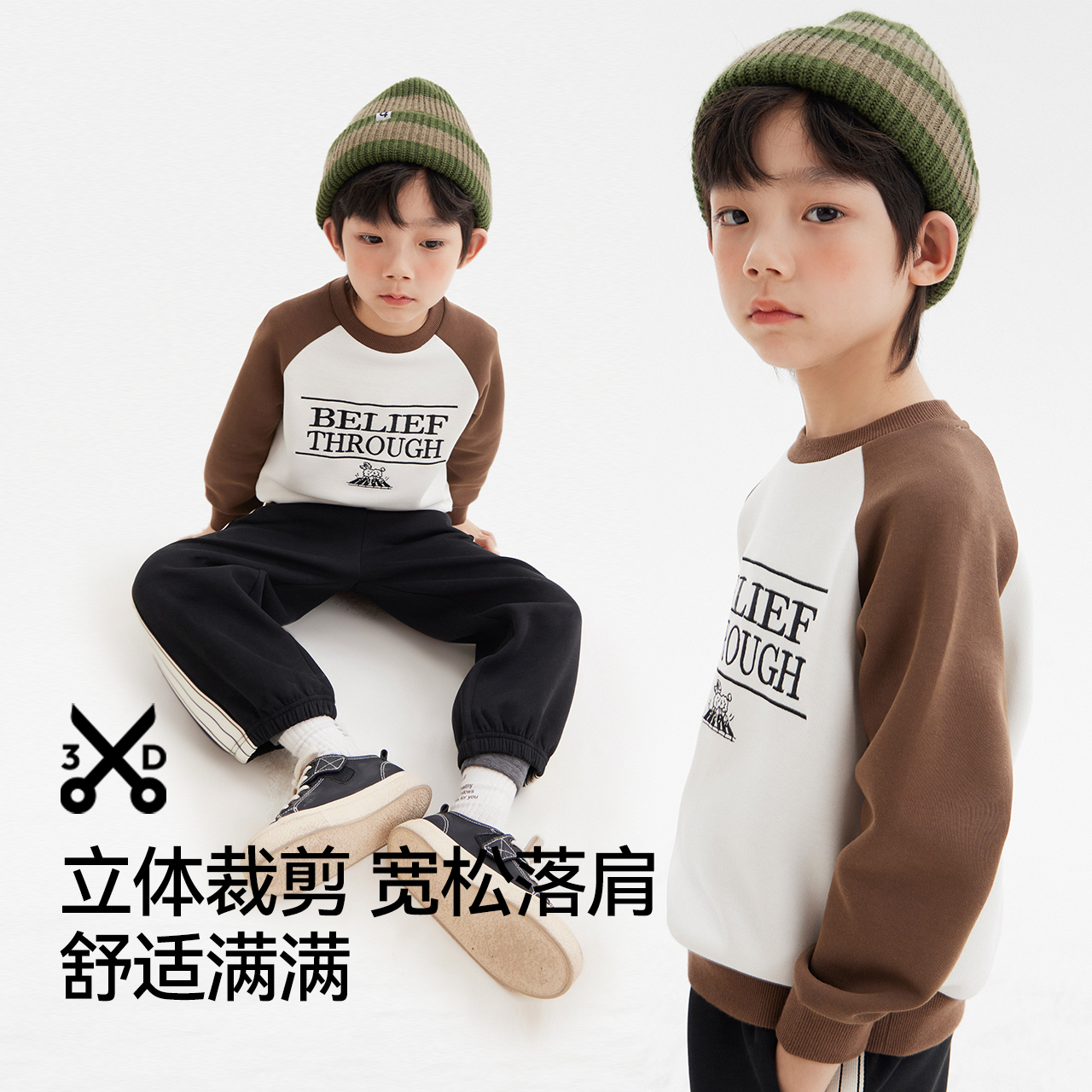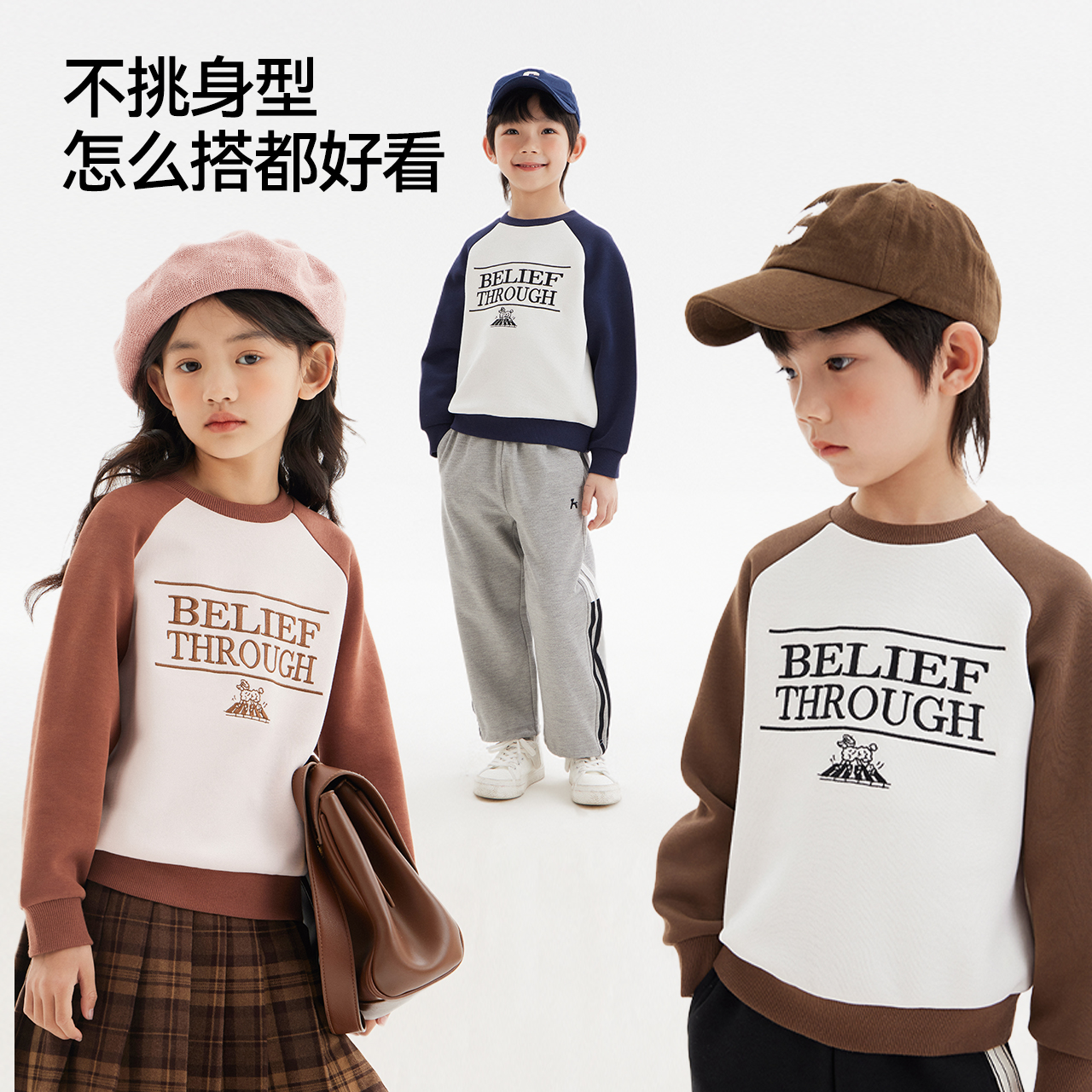 森马儿童卫衣春季学院风绣花长袖上衣男童女童时尚撞色插肩袖童装