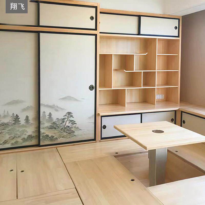 日式榻榻米定制整体实木塌塌米地台卧室书桌书柜榻榻米床衣柜一体