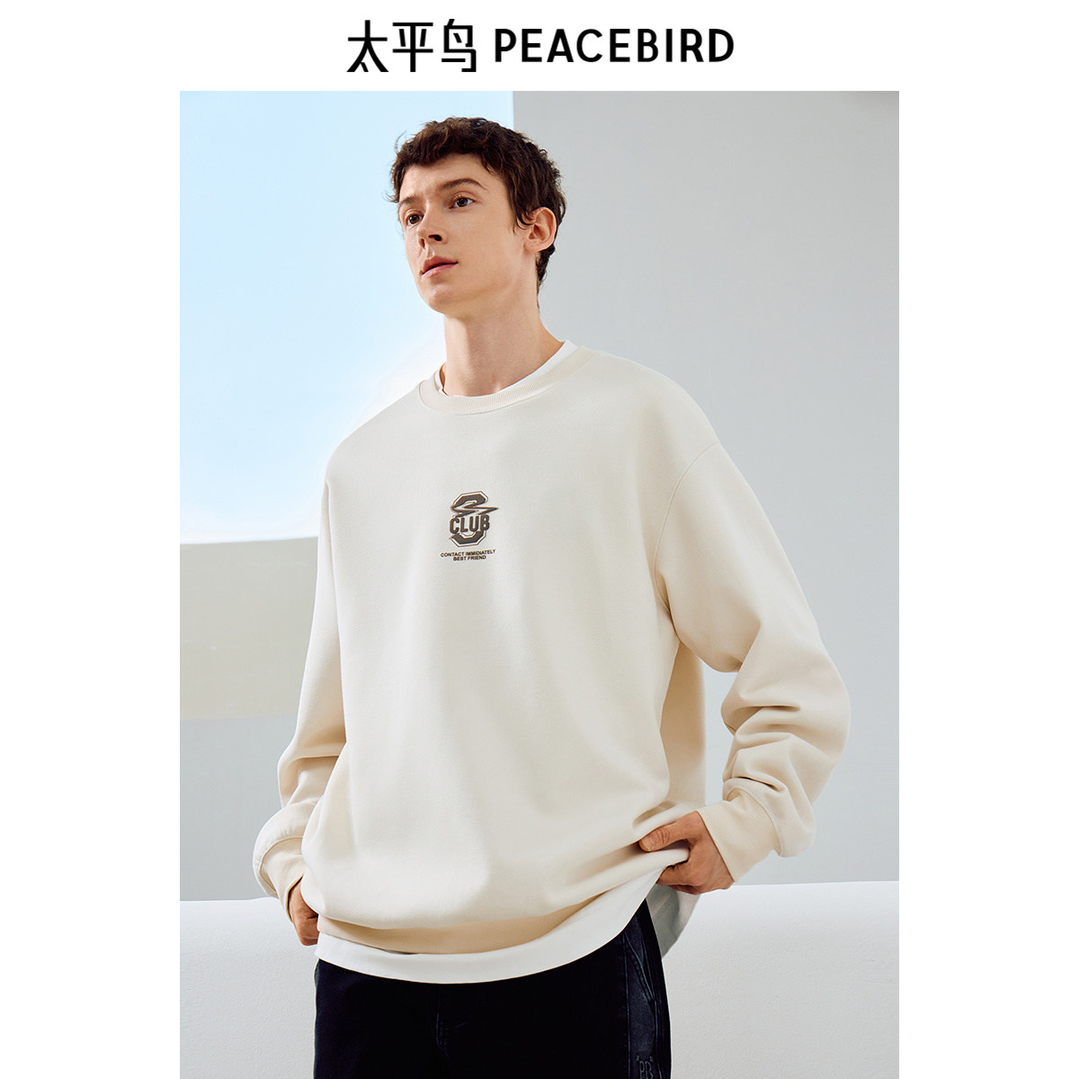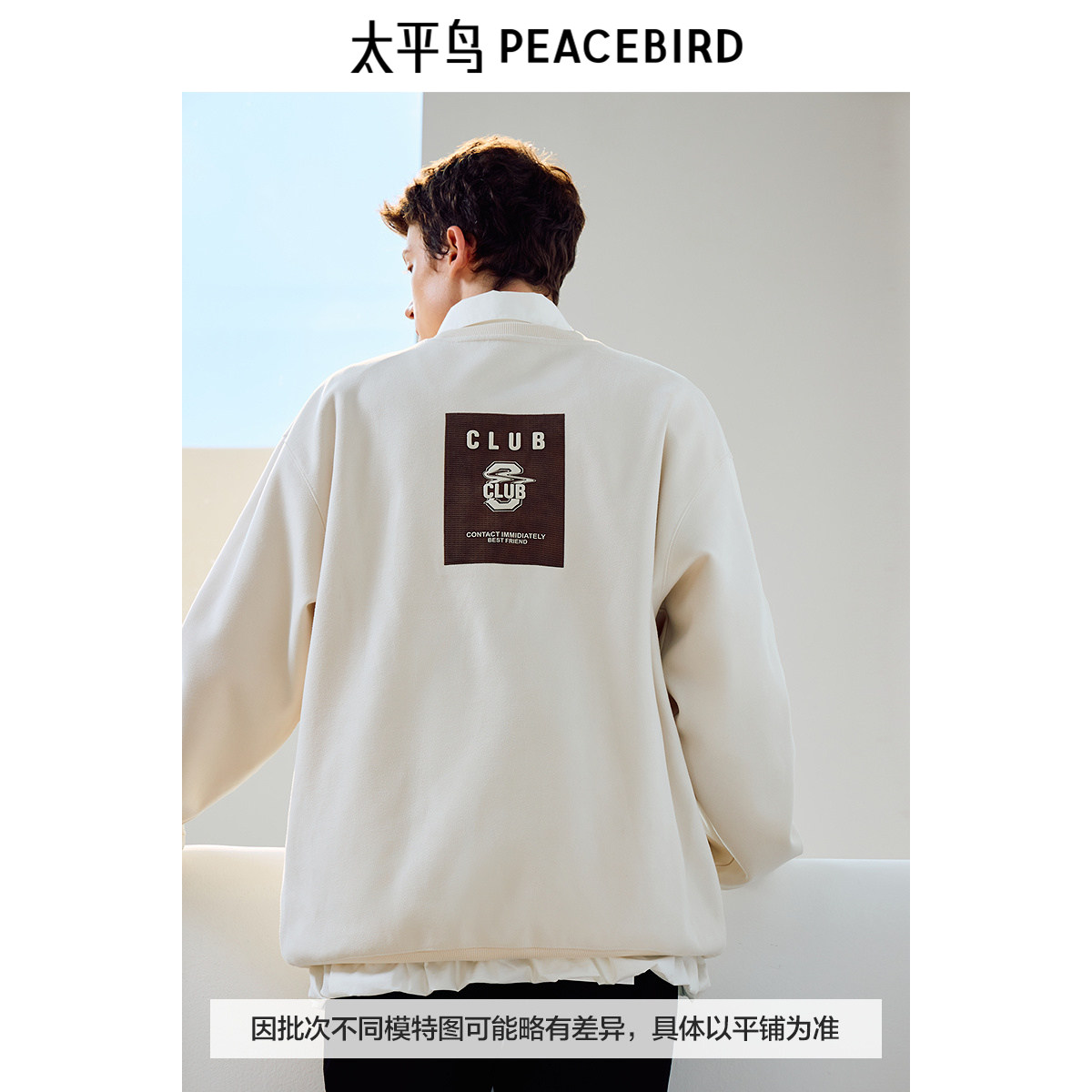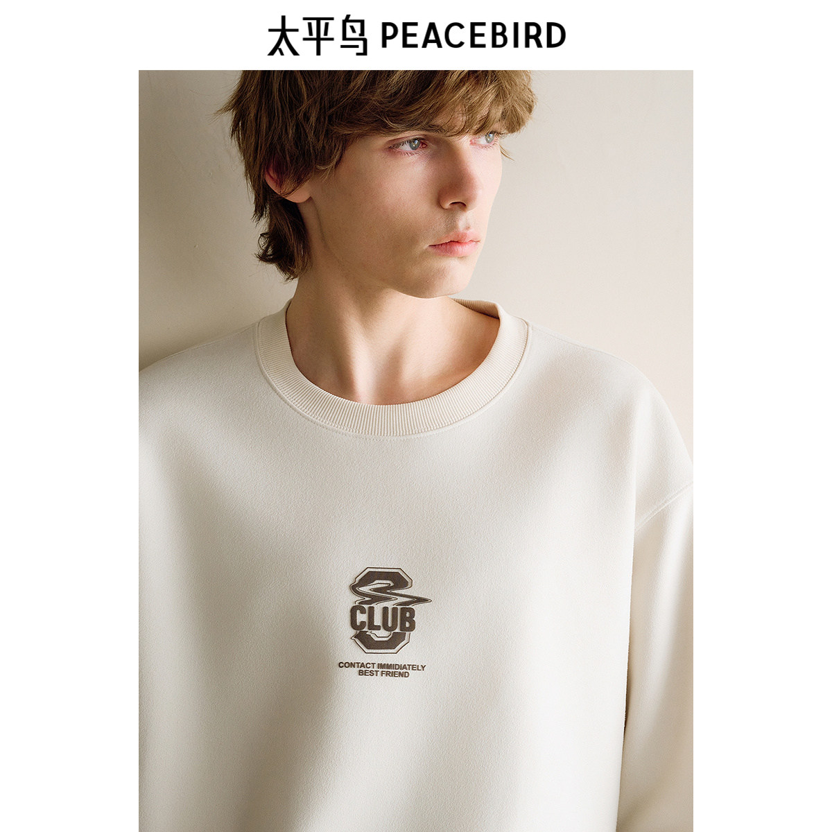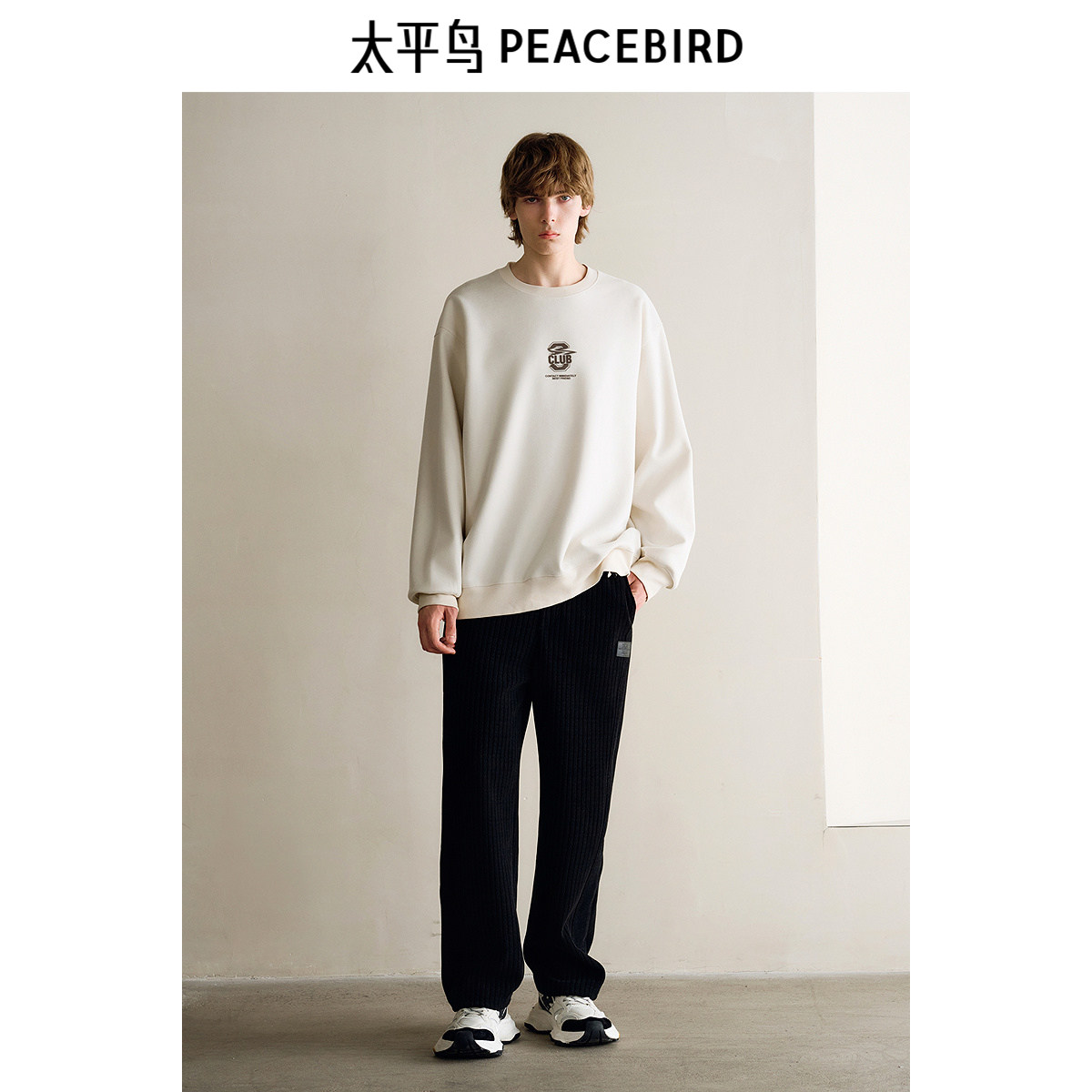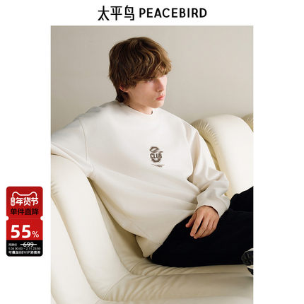太平鸟男装卫衣冬季阔版麂皮绒上衣潮流宽松圆领撞色字母套头衫