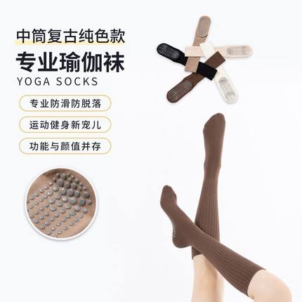 美拉德复古纯色款专业瑜伽袜女小腿普拉提微压显瘦美腿防滑地板袜