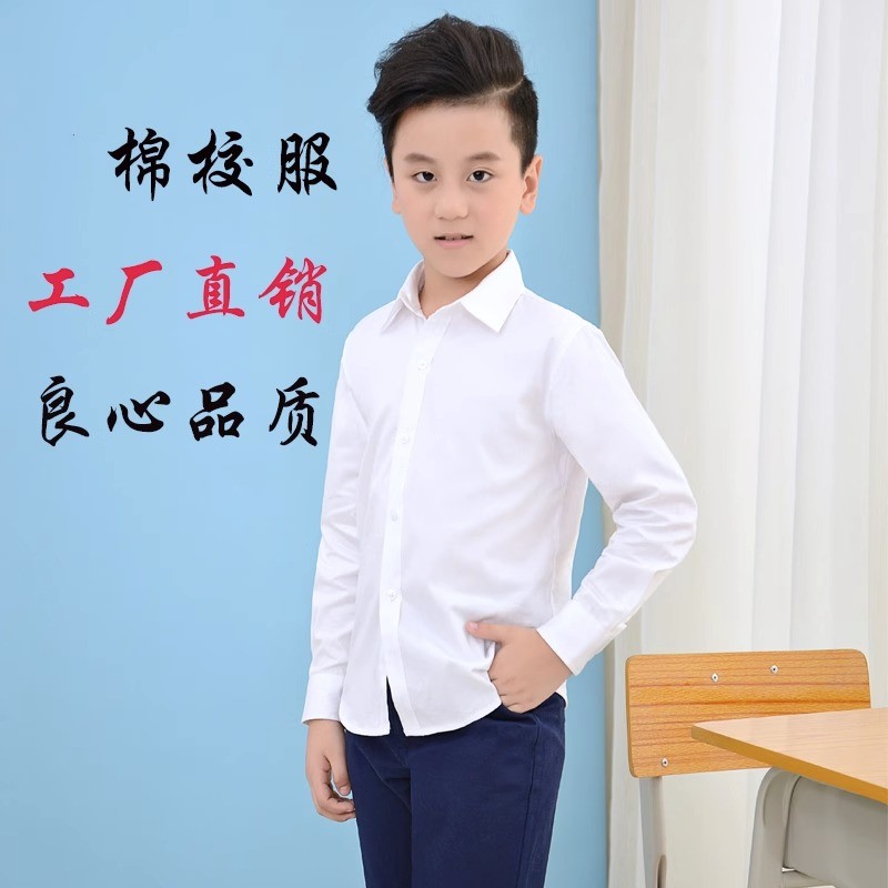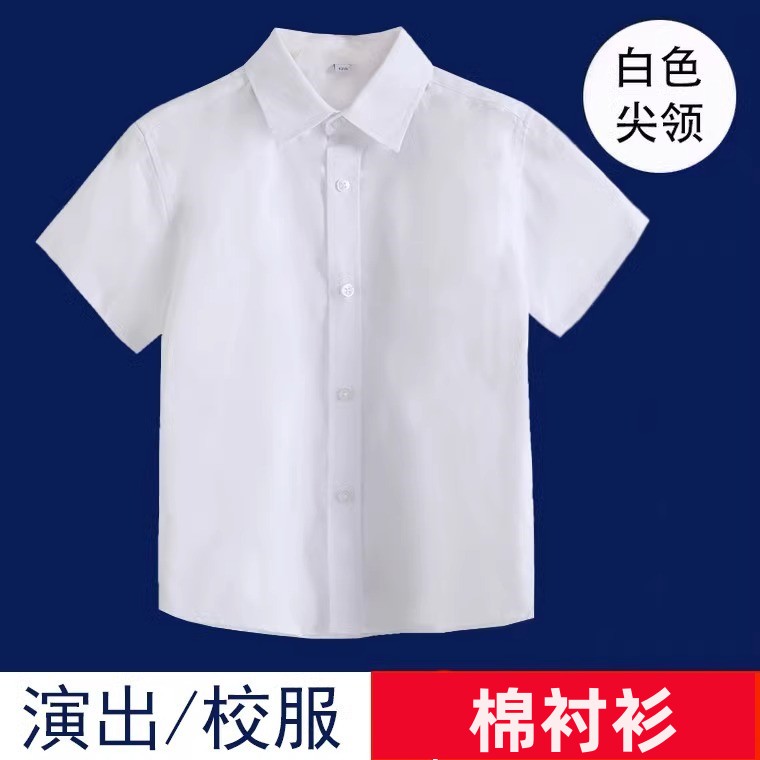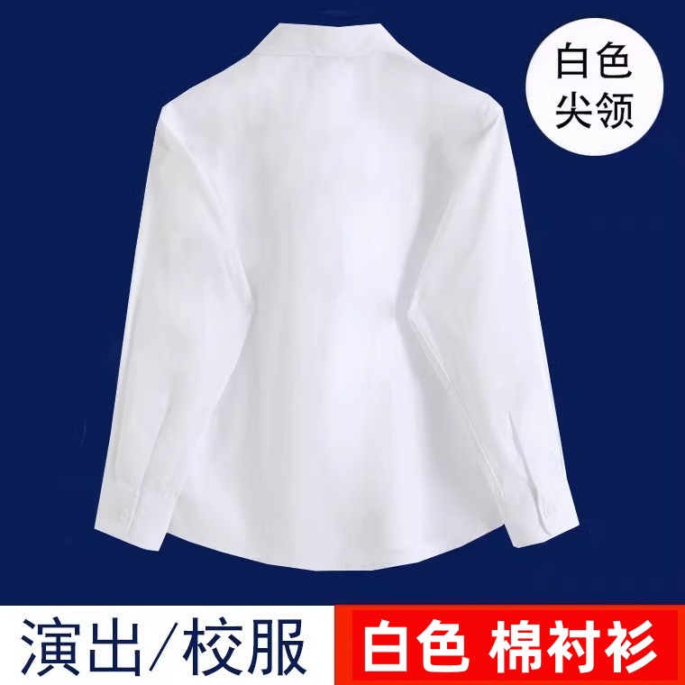 儿童白色长袖衬衫男女童衬衣钢琴主持花童礼服棉校服中小学生表演