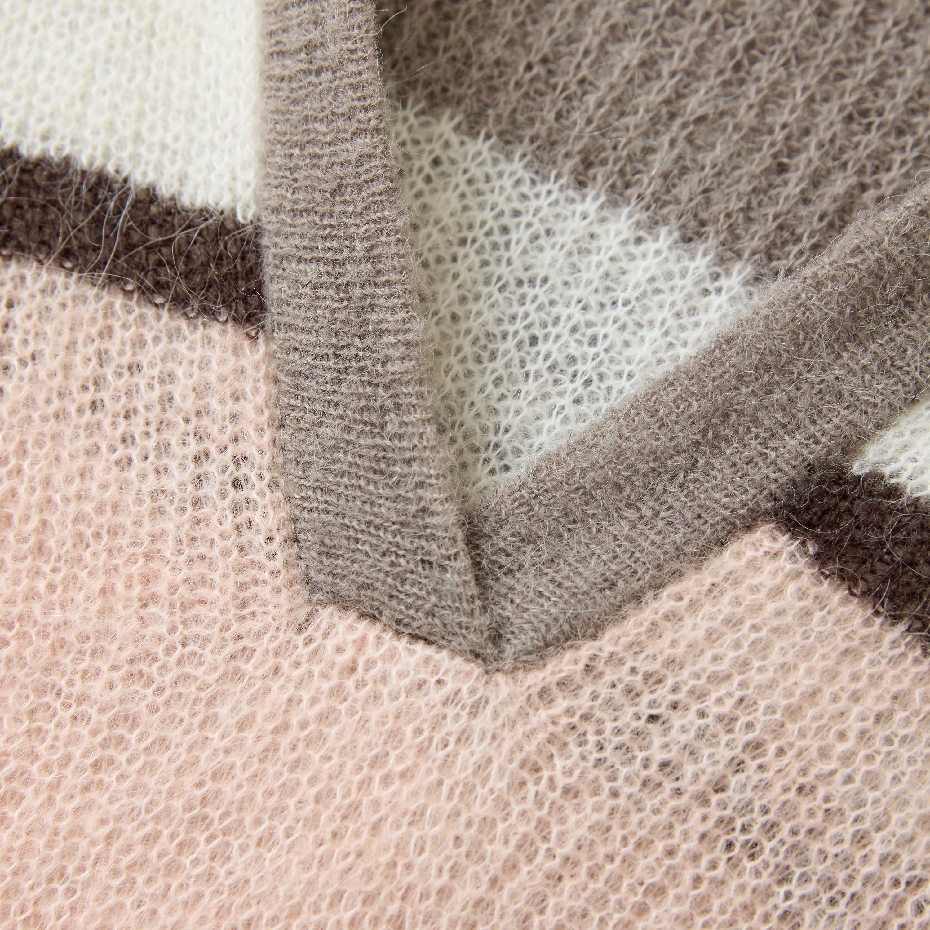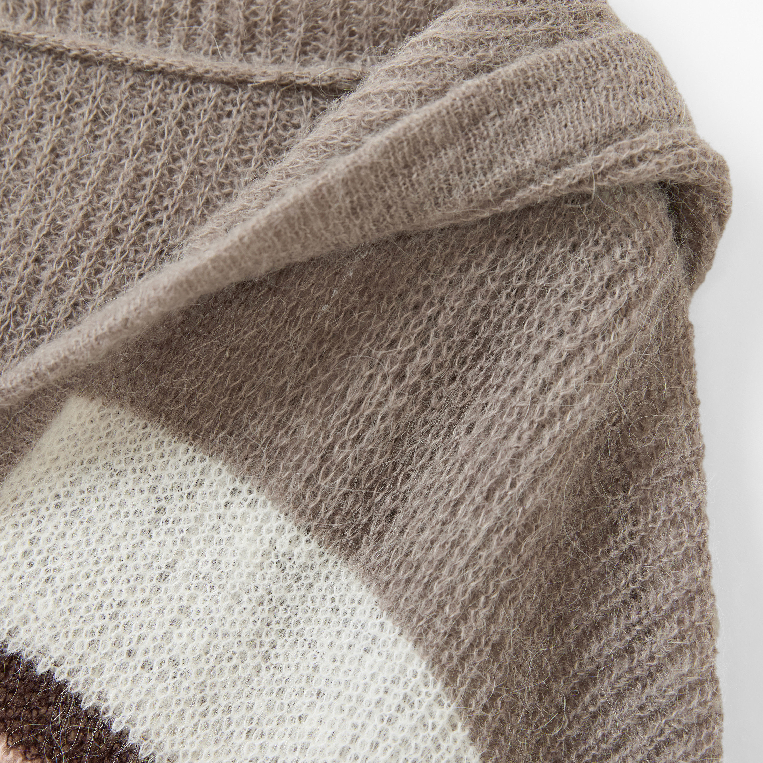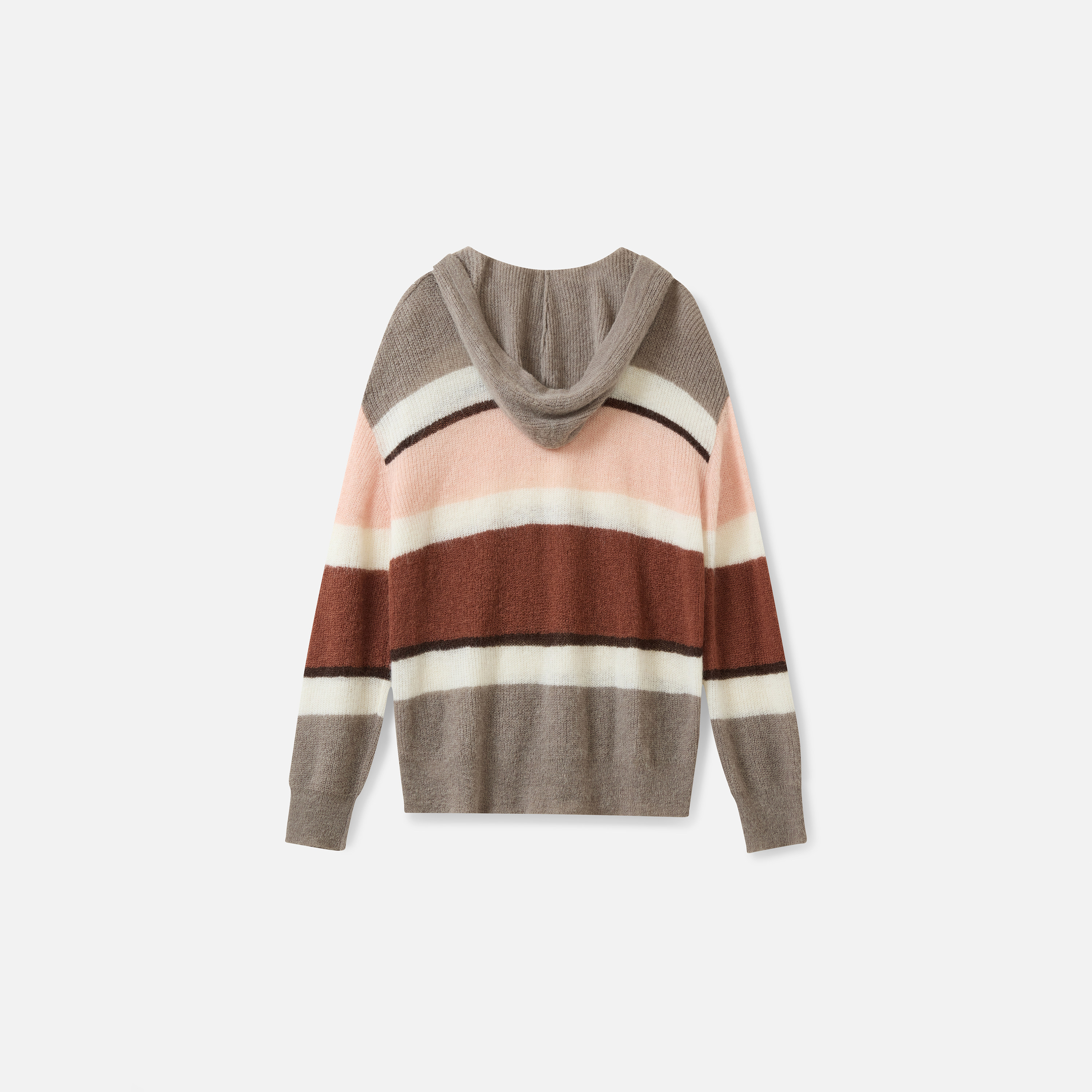 播商场同款连帽V领针织衫女25秋冬新款宽松条纹毛衣BDS4SD3698