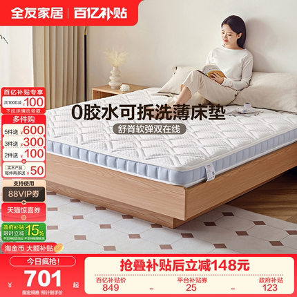 全友家居0胶水乳胶床垫10cm厚卧室家用薄款椰棕床垫硬垫子可拆洗
