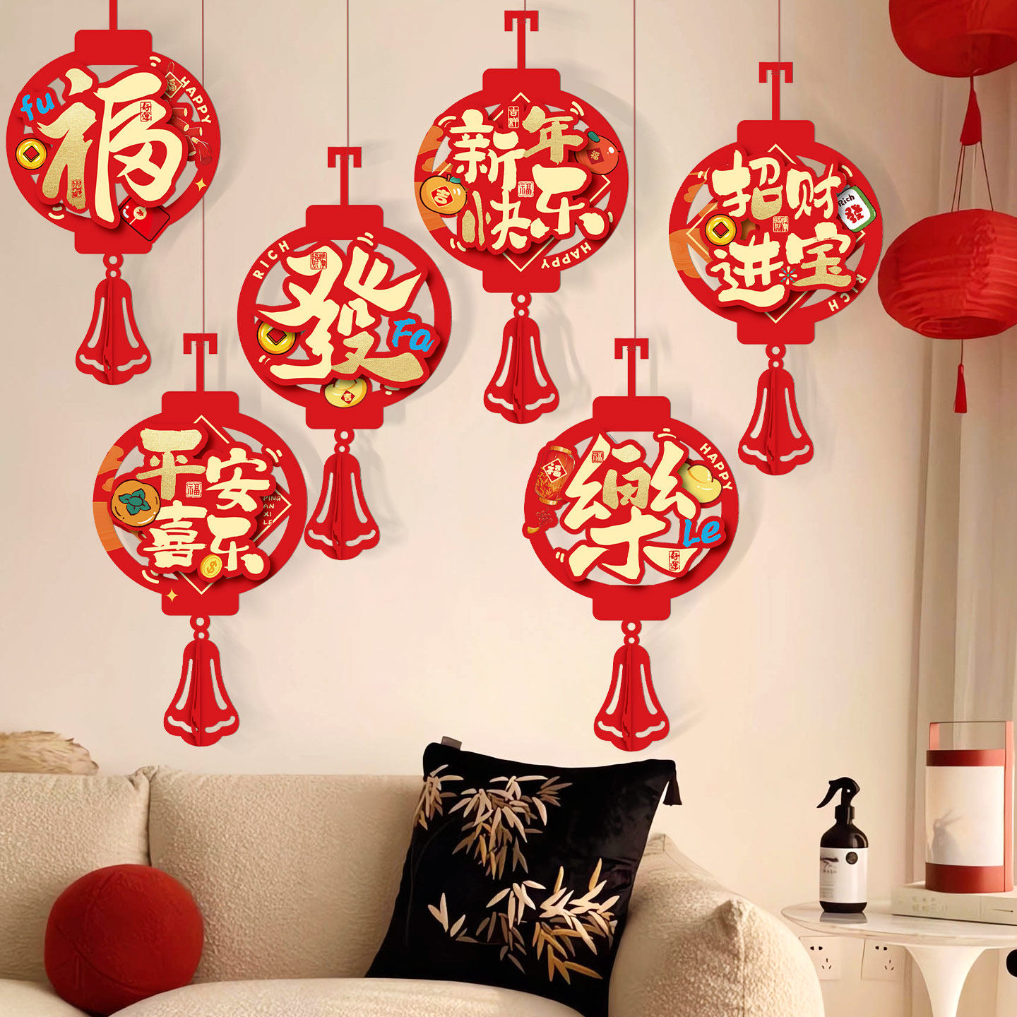 新年福字挂件马年拉花灯笼装饰品
