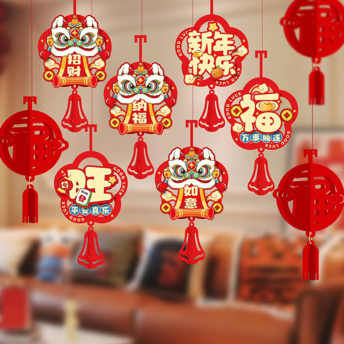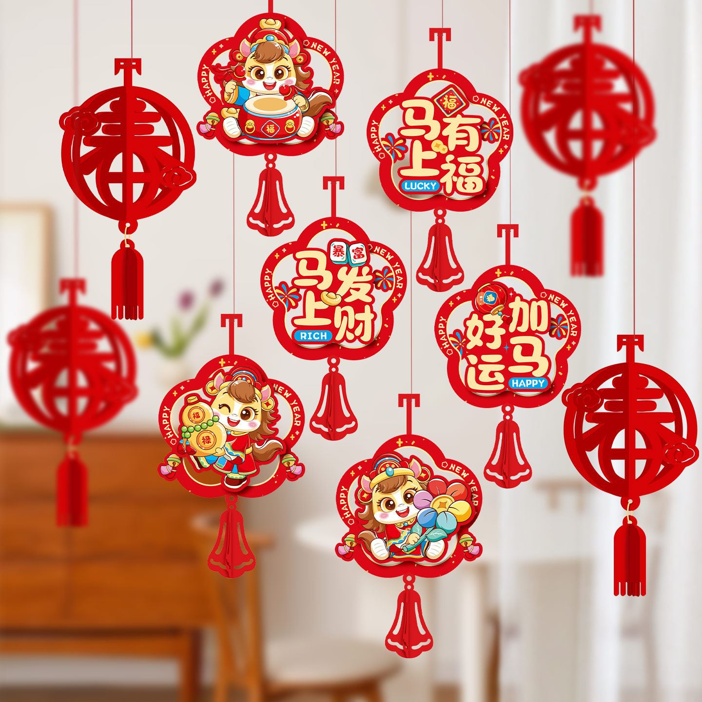 2026新年福字挂件马年装饰卡通立体拉花灯笼挂饰春节过年氛围布置