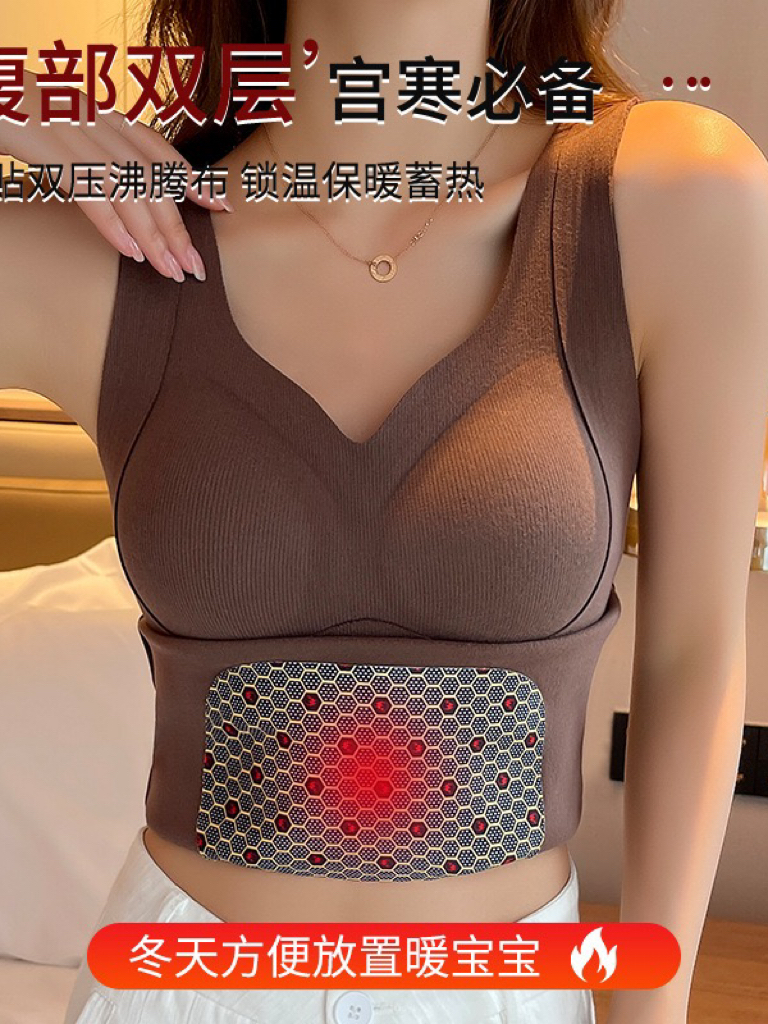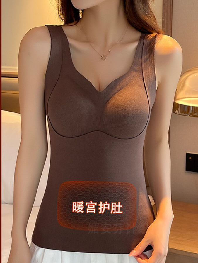 大码女装吊带背心女德绒胖mm宽松文胸保暖带胸垫聚拢美背长款内衣