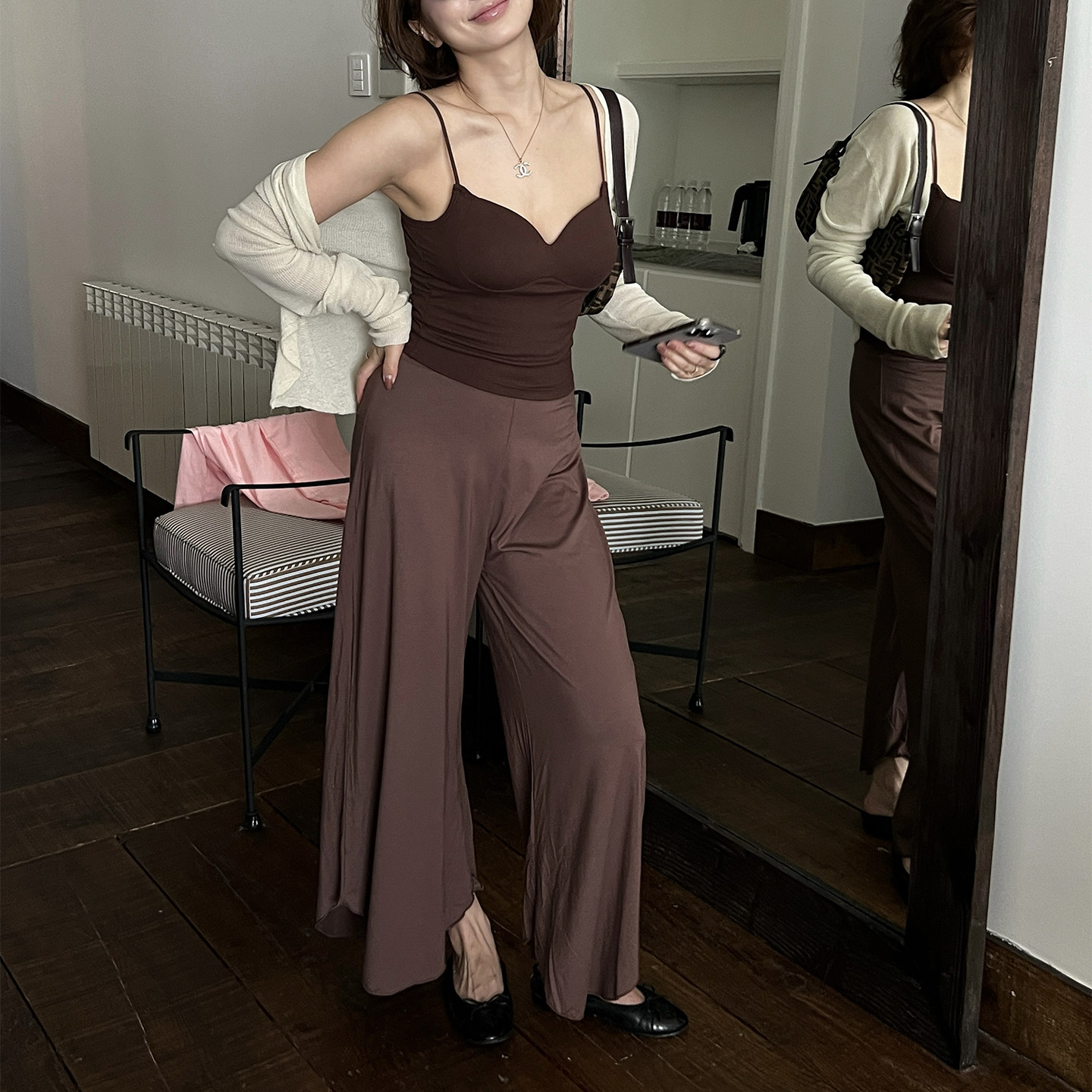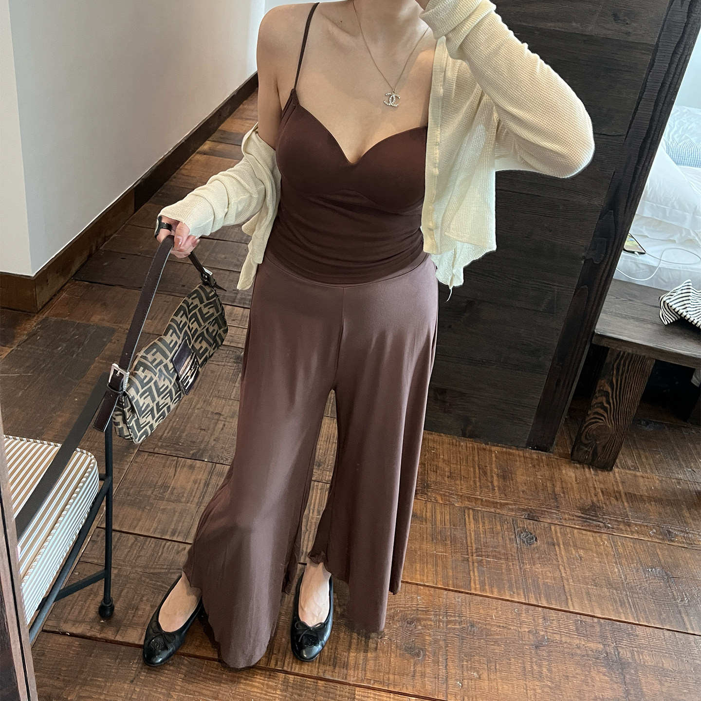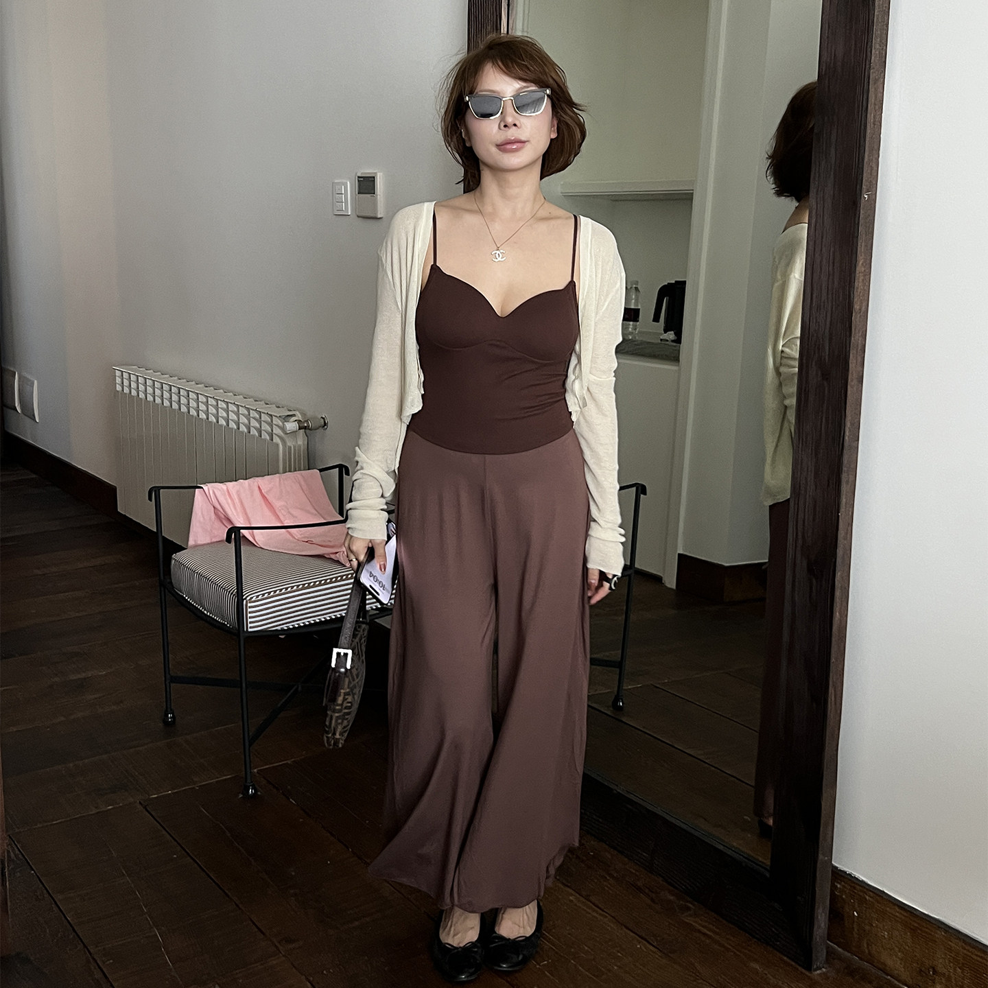 SECRET DINDI 花瓣裤 咖色七分休闲裤女夏季复古高腰显瘦宽松裤子