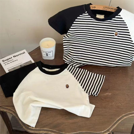 纯棉儿童T恤条纹短袖夏季宝宝衣服女童薄款上衣男童半袖夏款童装