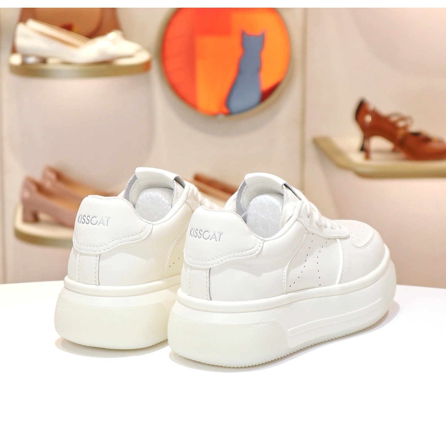KISSCAT接吻猫2025新款厚底透气小白鞋增高休闲板鞋女KA65181-50
