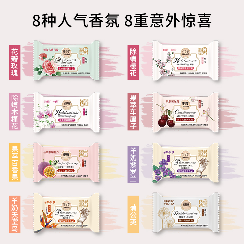 【8块香皂】红贝缇羊奶皂车厘子百香果精油沐浴除螨香皂小样8块