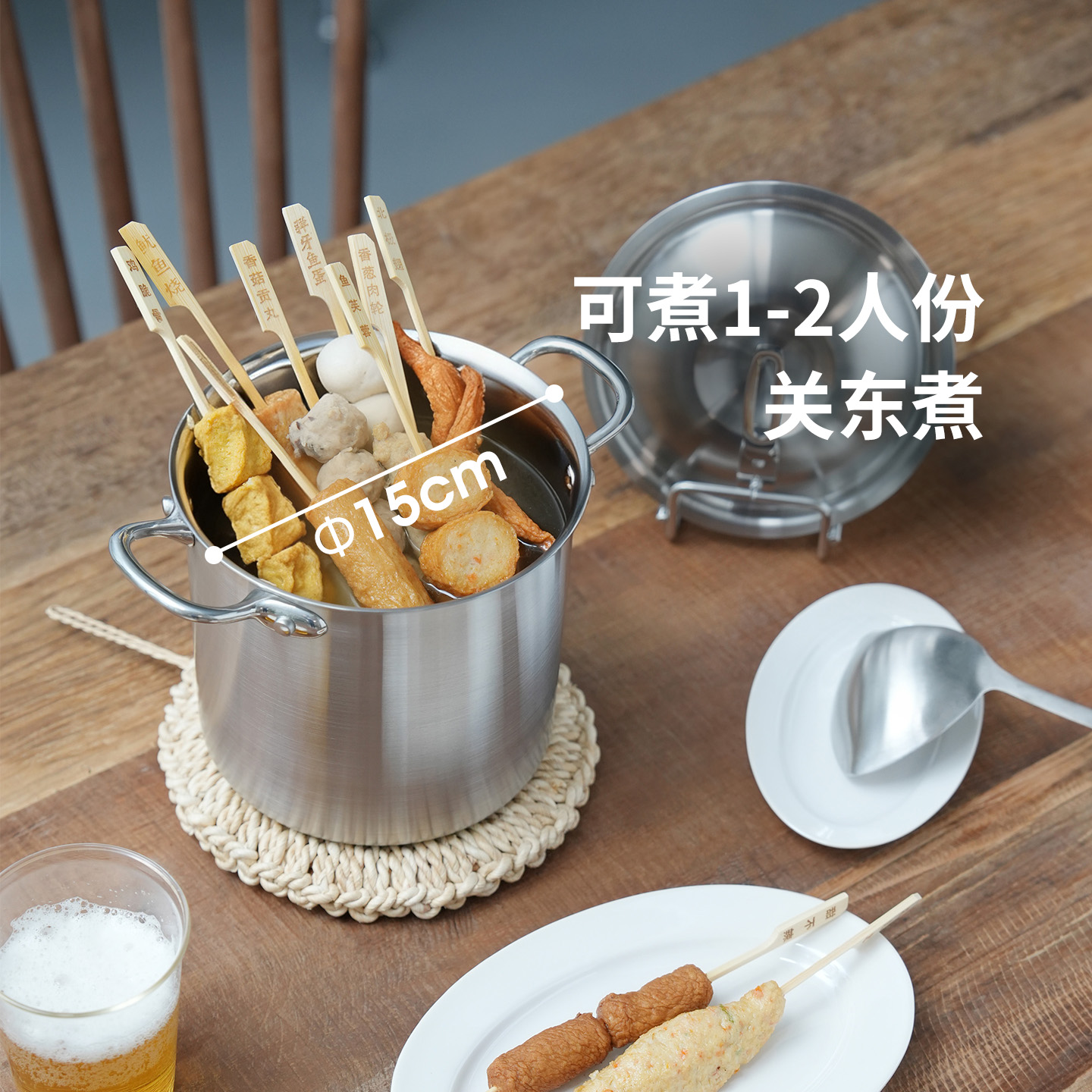 霜山443不锈钢炖锅家用深型煲汤卤味锅15cm关东煮串串锅双耳汤锅