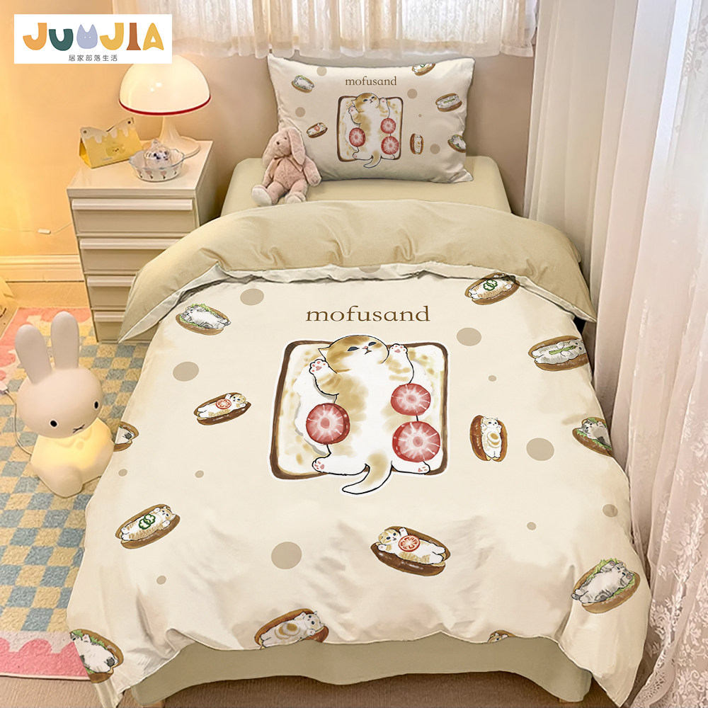 卡通可爱猫咪鲨鱼床品四件套学生宿舍床单被套三件套磨毛可机洗