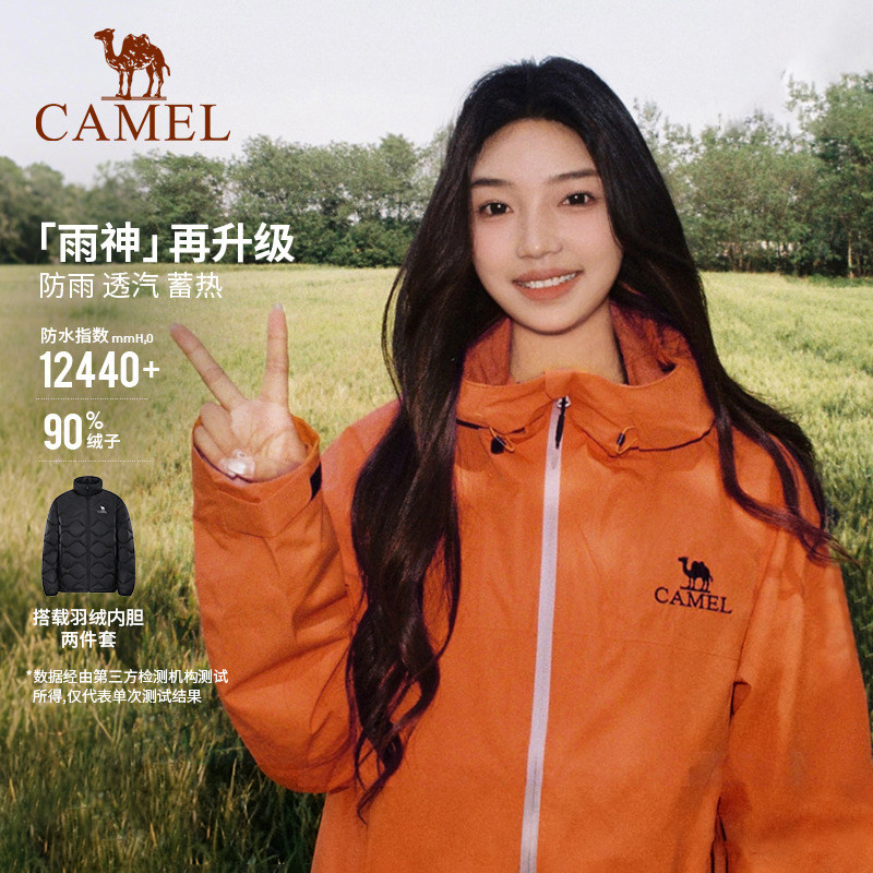 骆驼雨神鸭绒羽绒服内胆冲锋衣女款冬季户外三合一登山羽绒外套男
