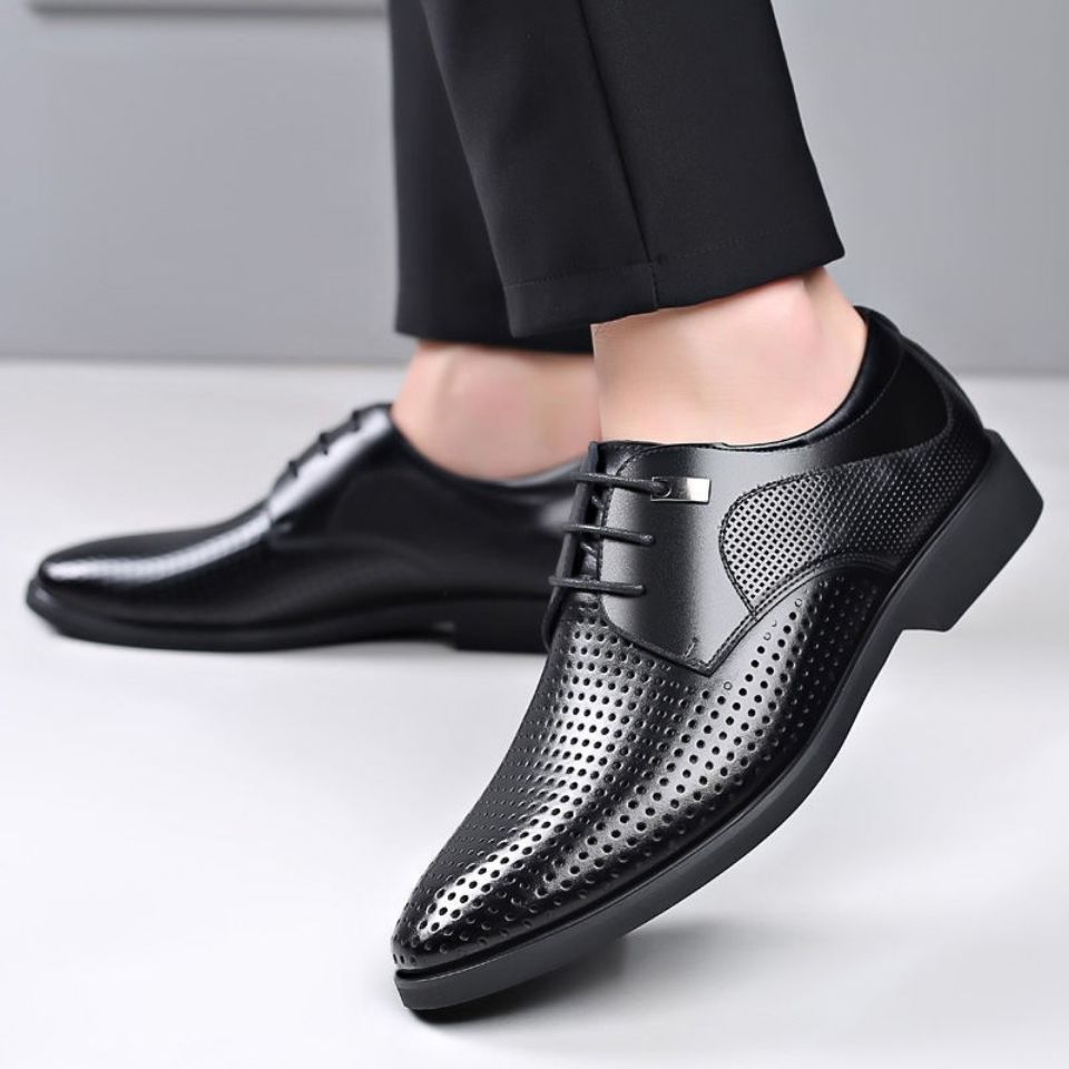 皮鞋男夏季镂空透气大码男鞋真皮商务正装洞洞凉皮鞋男士内鞋舒适