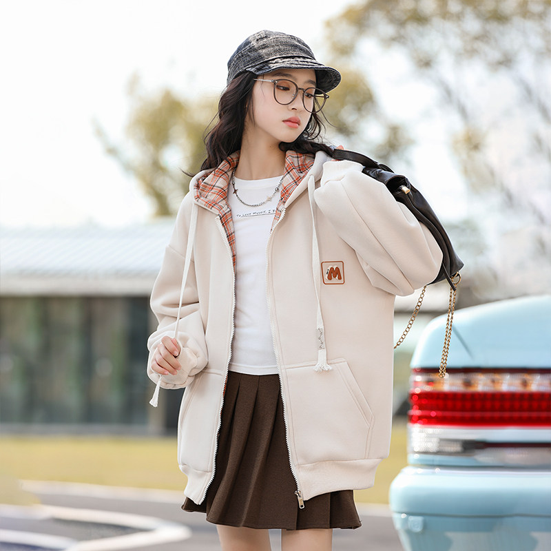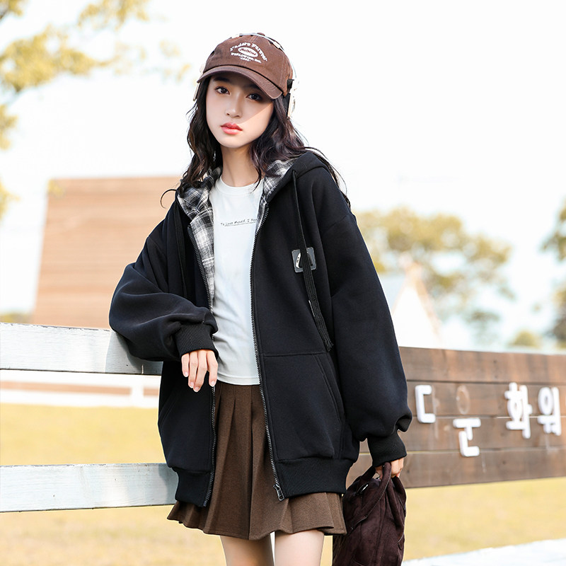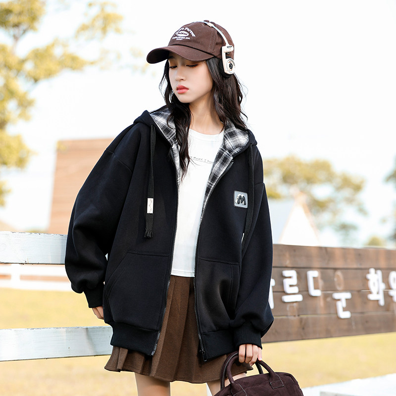 女大童连帽卫衣2025新款秋冬加绒高中学生拉链开衫初中生冬装外套