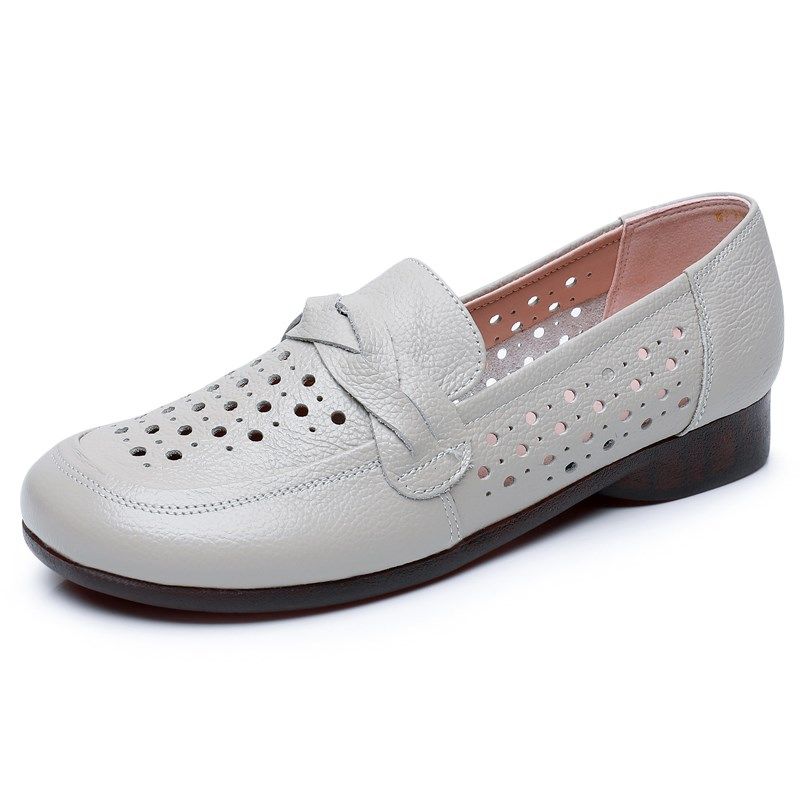 真皮镂空凉鞋妈妈鞋夏季舒适透气中老年平底鞋防滑牛筋底洞洞单鞋