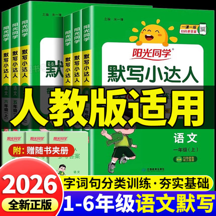 2026新 阳光同学语文默写小达人一二三四五六年级上册下册小学教材人教版语文同步专项训练默写能手词语句子默写积累练习一课一练