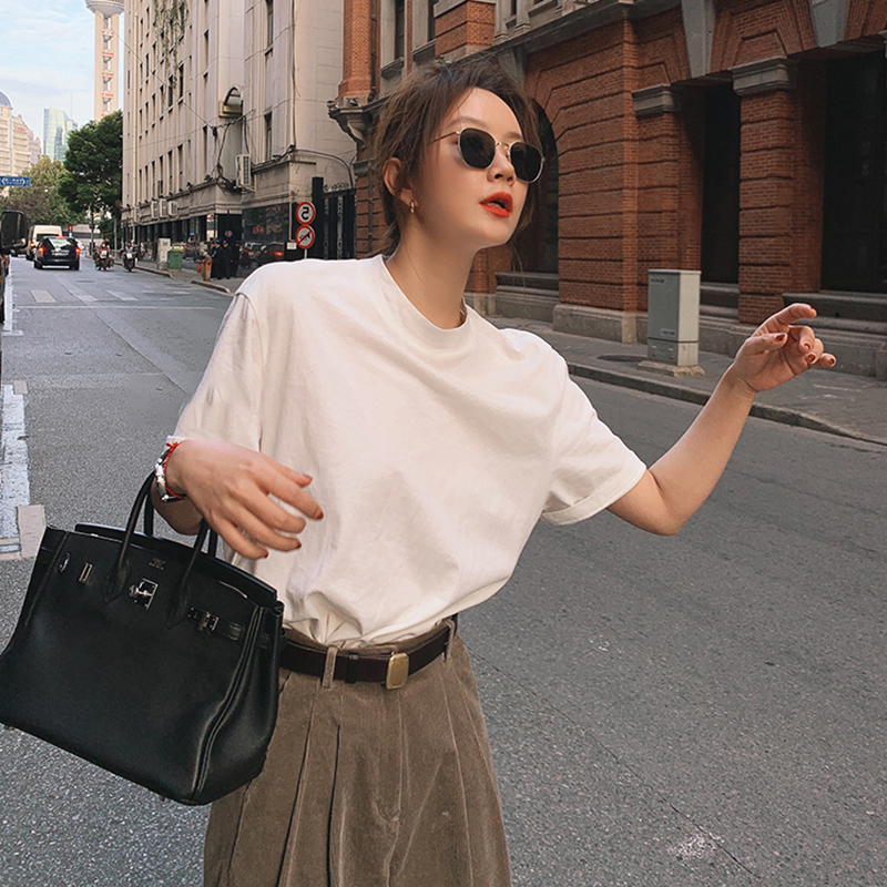 短袖t恤女2024年夏款韩版休闲百搭宽松显瘦纯棉圆领白色体恤上衣