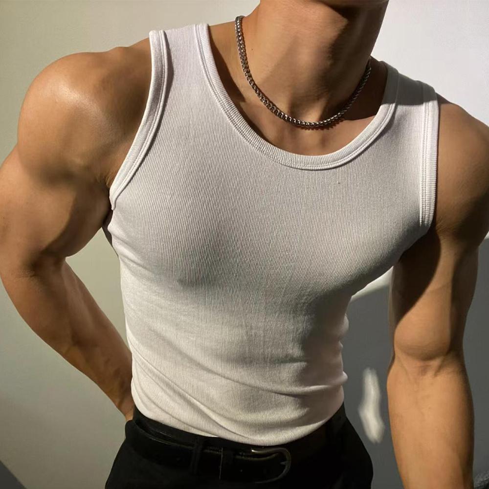 夏季粗螺纹健身工字背心弹力修身吸汗训练坎肩贴身棉肌肉男重磅