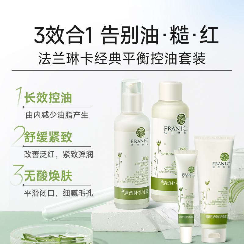 法兰琳卡芦荟清爽护肤套装祛痘屏障护肤品面霜补水水乳化妆品正品