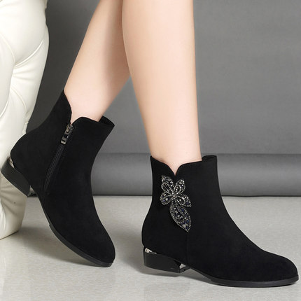 真皮2025新款秋冬单靴磨砂中跟短靴女软底低跟软底棉鞋粗跟靴子女
