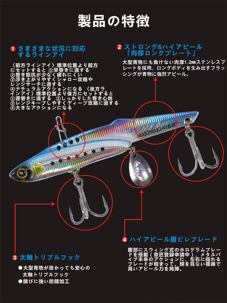 Hayabusa深海船钓青物VIB 铁板饵全泳层濒动 金枪鱼远投饵40g 60g