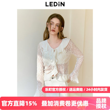 乐町蕾丝荷叶边长袖雪纺衫2025秋季新款设计感袖口宽松开衫上衣