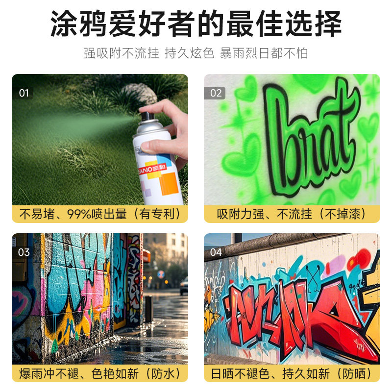 街头涂鸦喷漆三和室外墙壁墙体喷绘墙面墙绘diy彩色喷雾防水漆