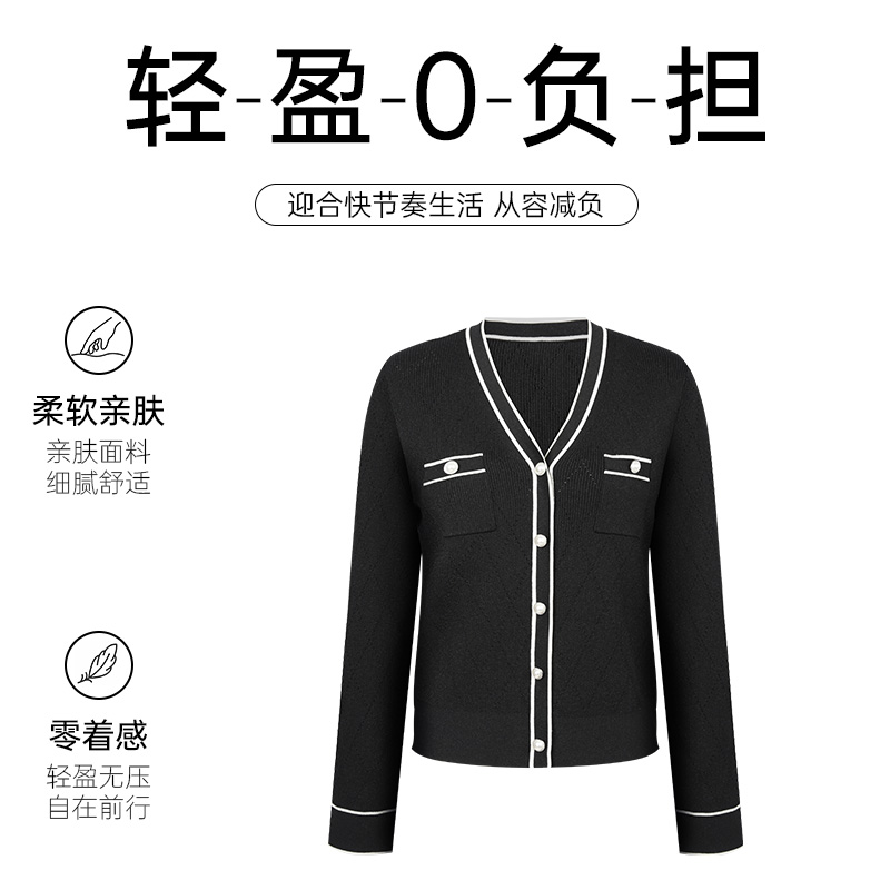 乔治白春夏季新款V领长袖针织开衫女宽松显瘦毛衣外套