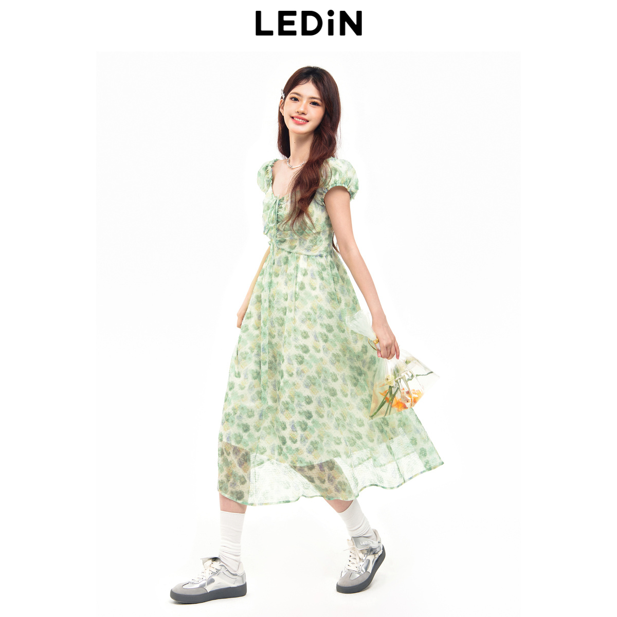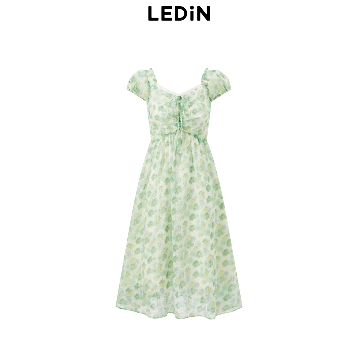 【商场同款】乐町夏季新款印花无袖显瘦碎花连衣裙C1FAE2436达