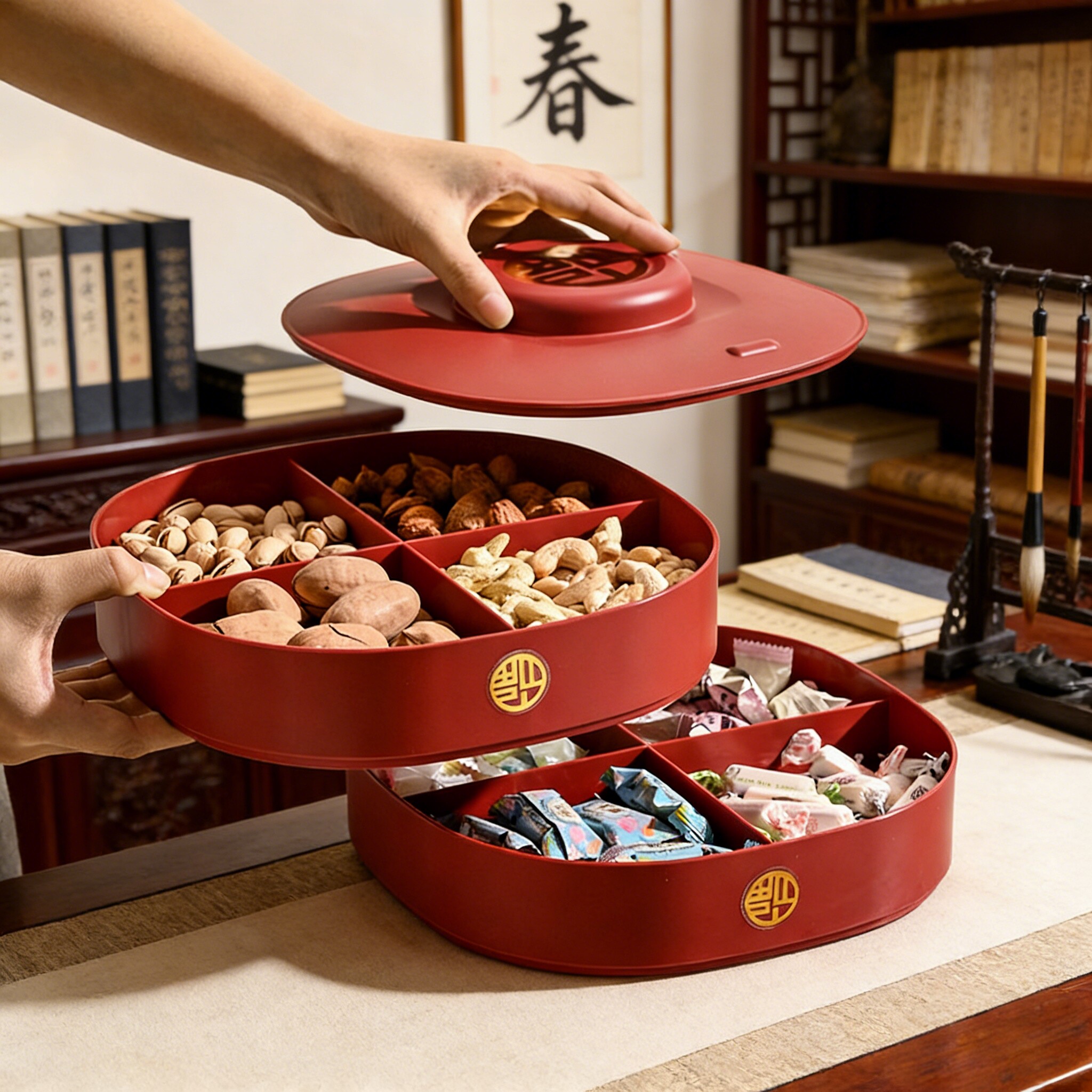【2层带盖8格分类】过年款干果盘