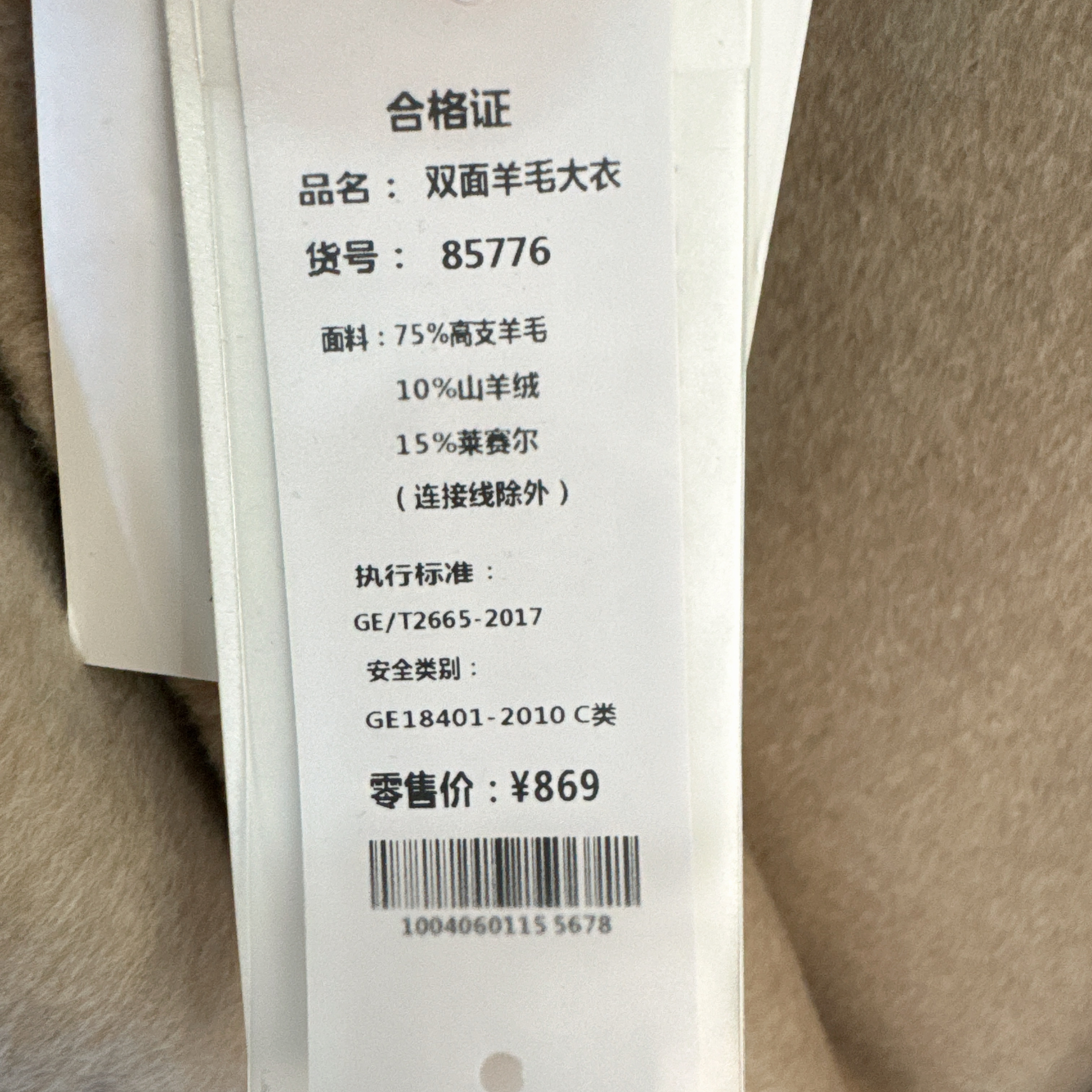 85776时尚双面羊毛大衣女短款毛呢外套气质百搭2025冬季专柜正品
