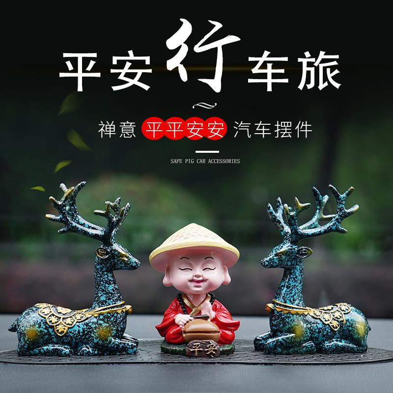 创意汽车摆件可爱男女个性梅花小鹿中控台车载和尚小猪高档摆饰品